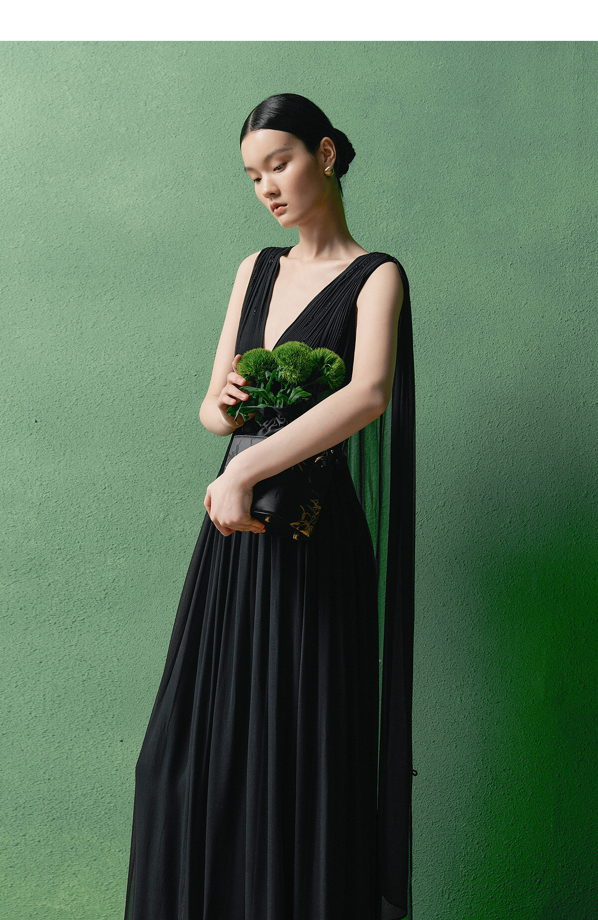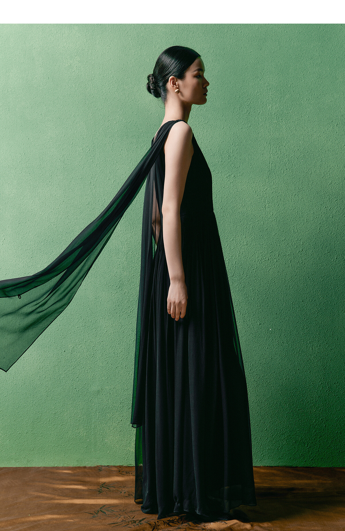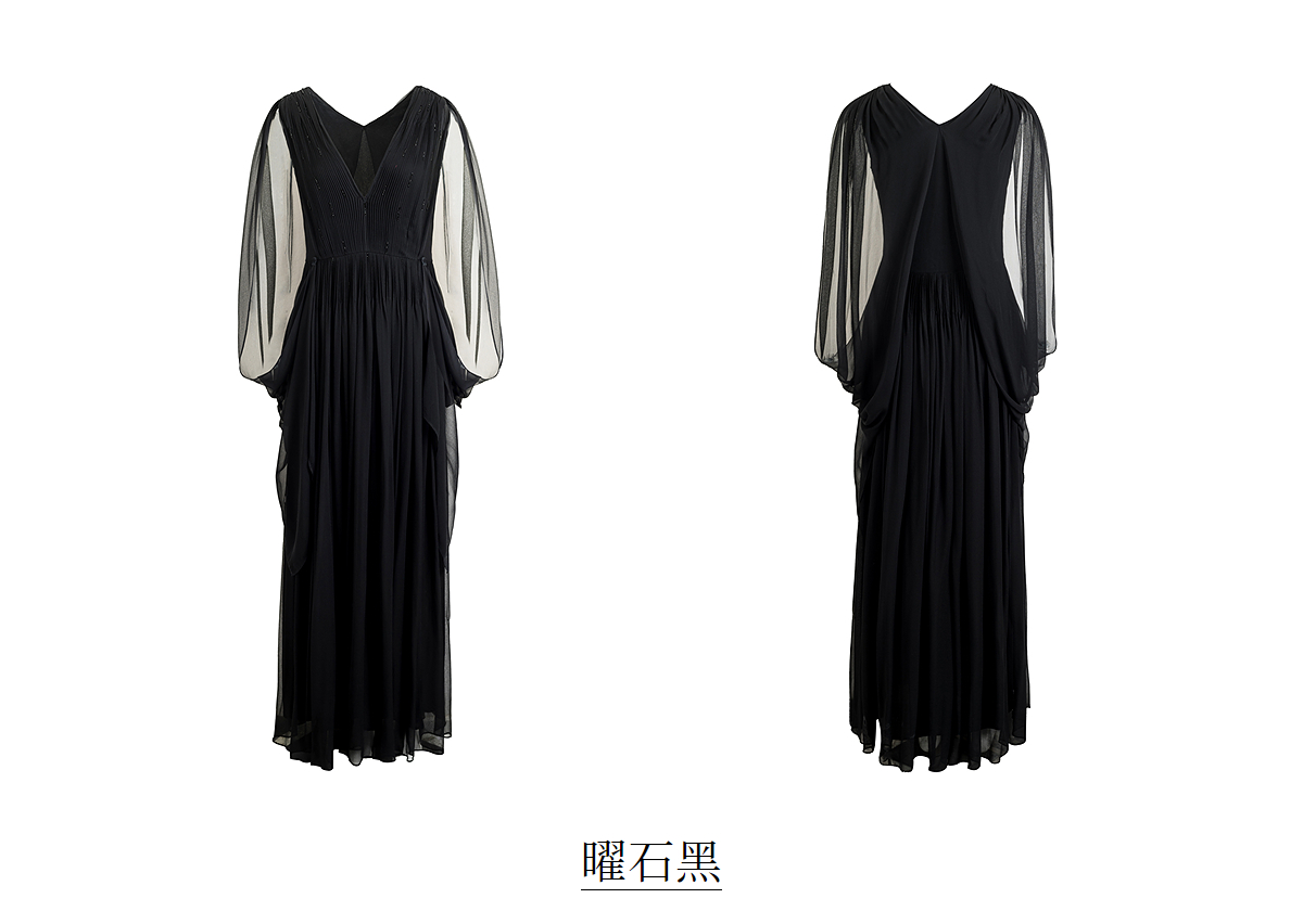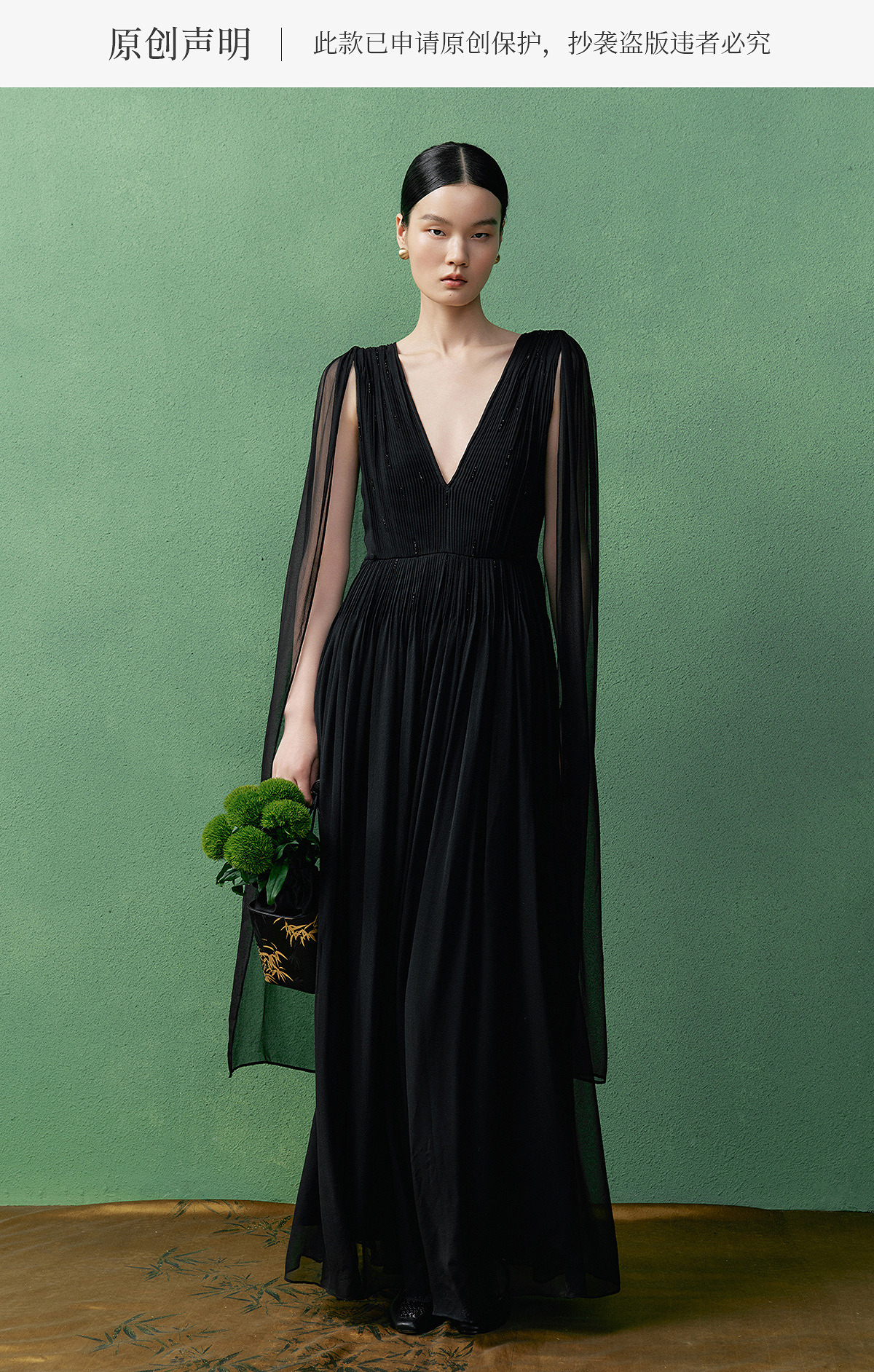 【林栖设计小店】桑蚕丝连衣裙2025夏季新款手工钉珠复古优雅花仙子长裙女1952124