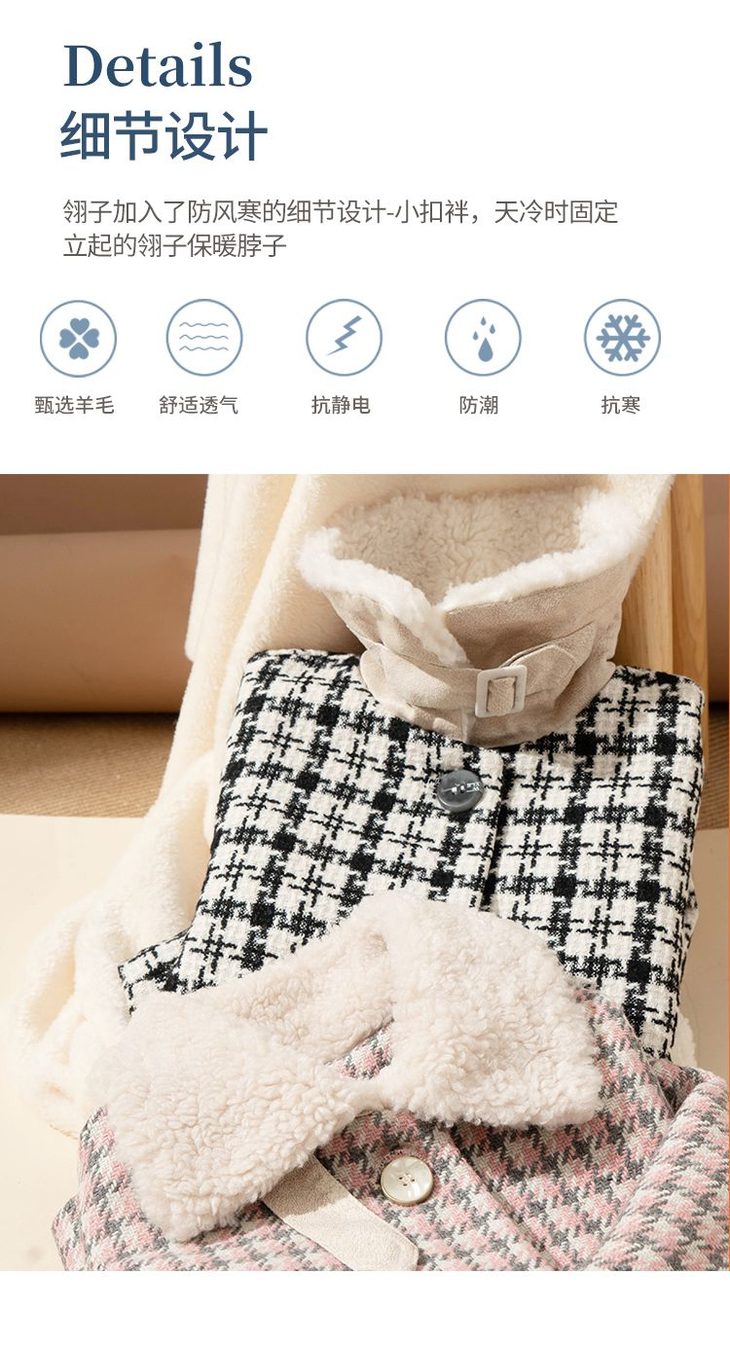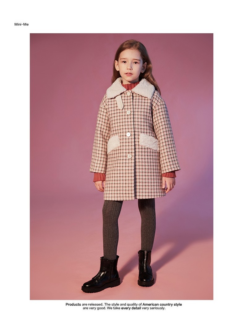 咕噜日记女童撞色毛领加厚格子呢大衣 DGW002