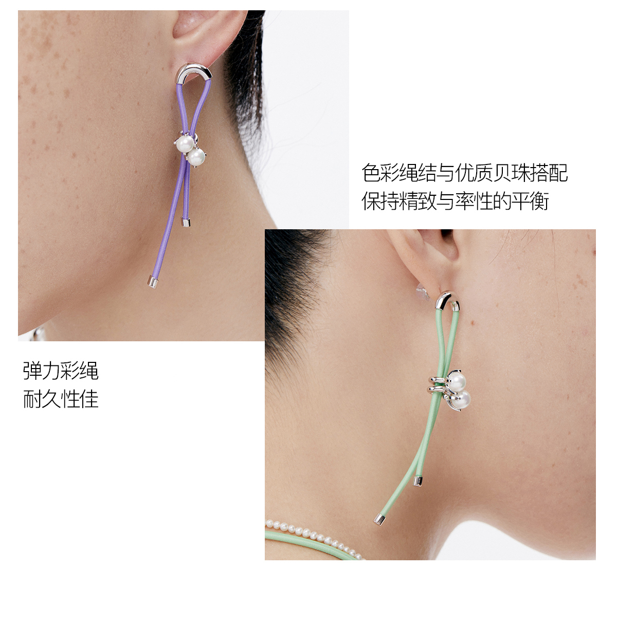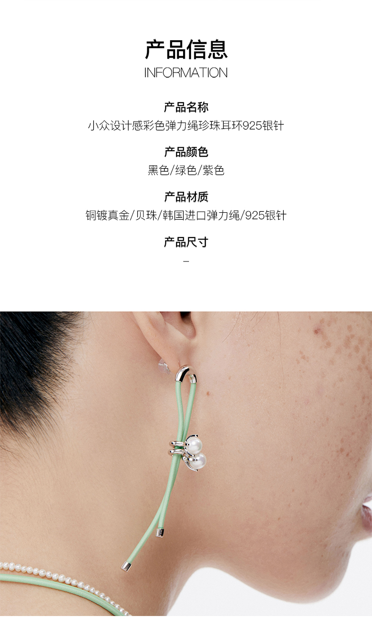 lost in echo 小众设计感彩色弹力绳珍珠耳环925银针
