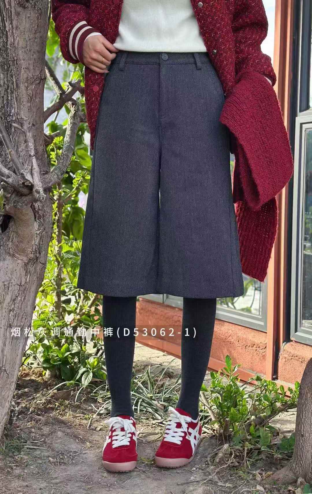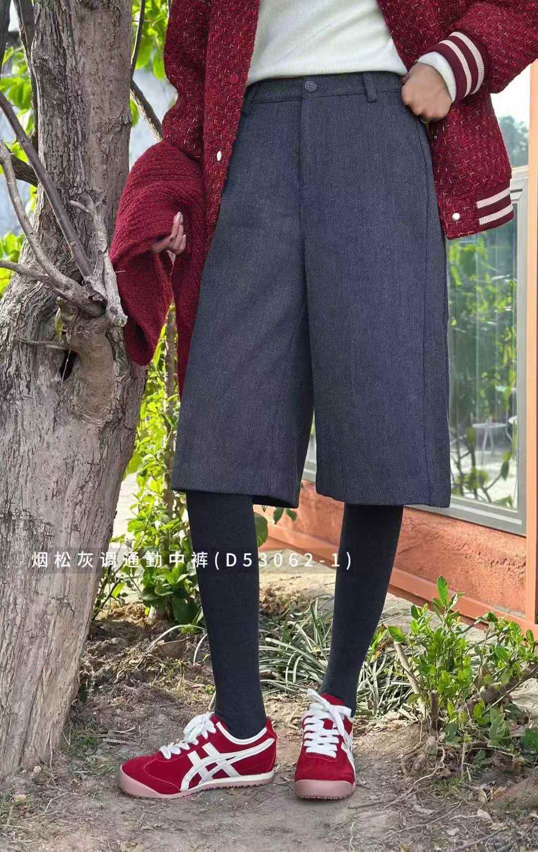 D53062-1#烟松灰调通勤中裤