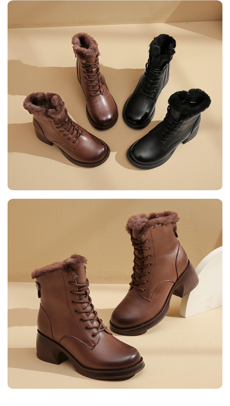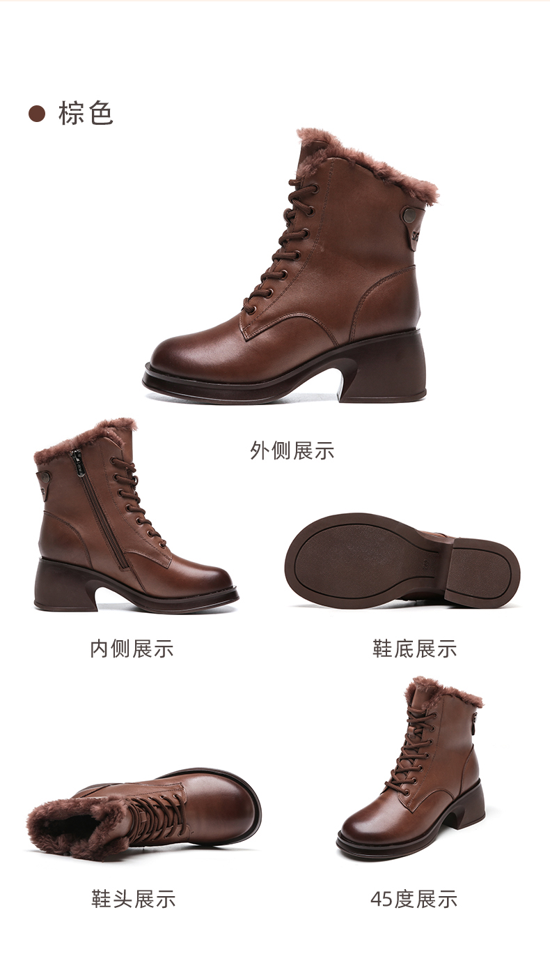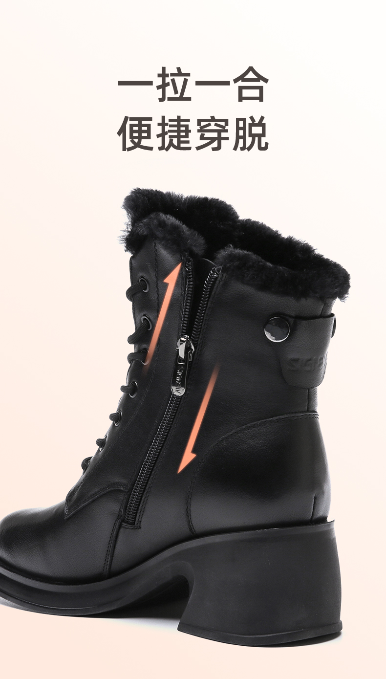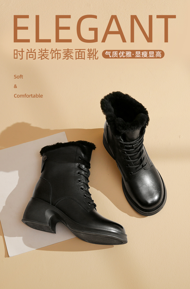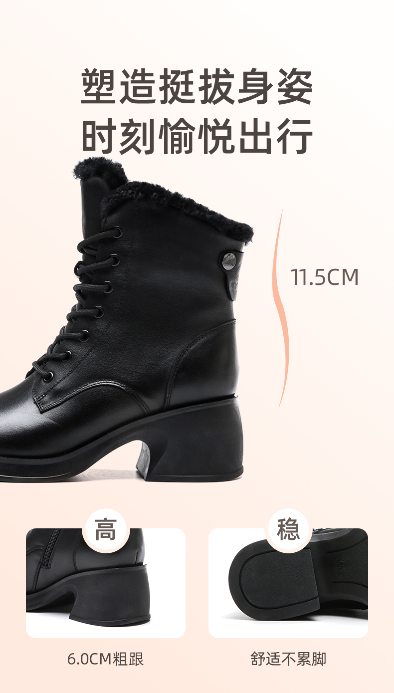 信诺马丁靴女2022新款冬季加绒保暖高跟英伦风靴子女士短靴真皮鞋X2M203623
