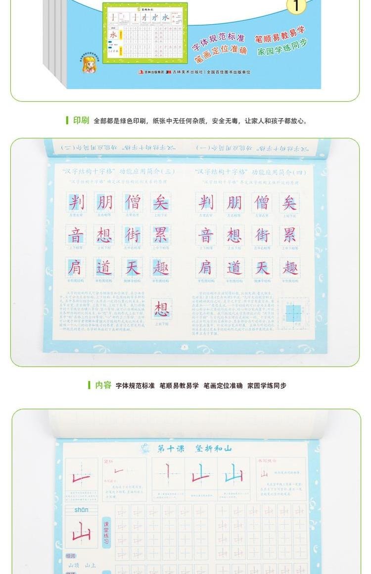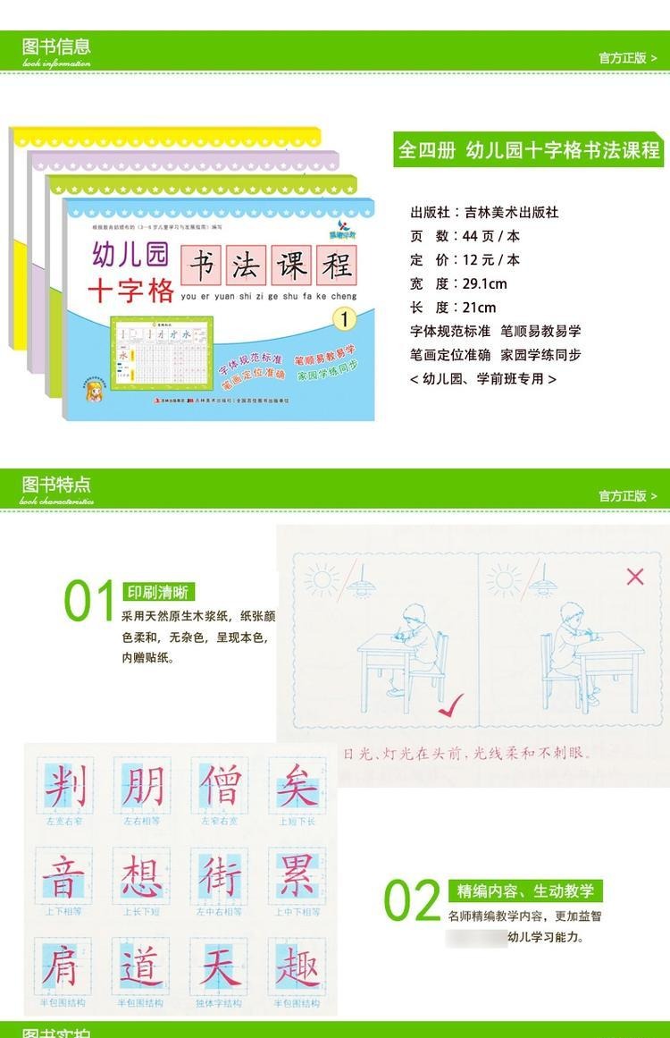 全套4本 汉字 偏旁 部首描红 田字格大本练习3-6岁儿童幼小衔接书法课程 幼儿园学前班书法启蒙早教书 幼儿园十字格书法课程3