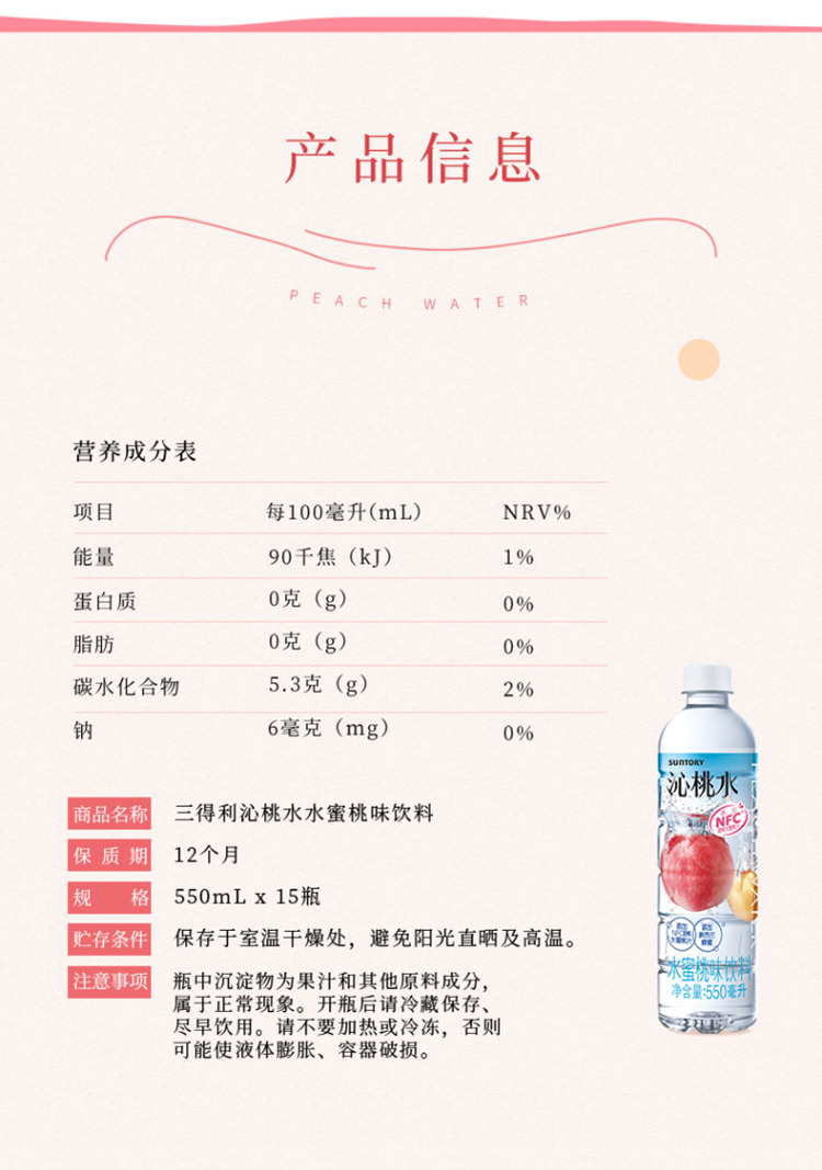 三得利 沁桃水 550ml*15瓶(包邮直发)