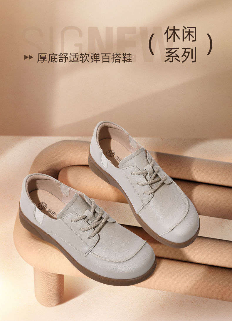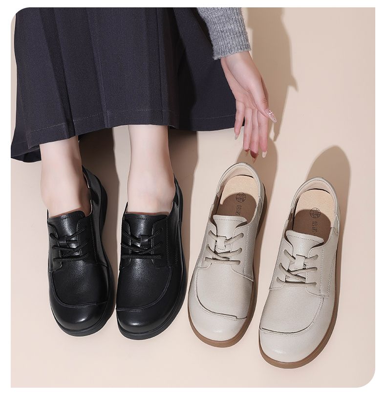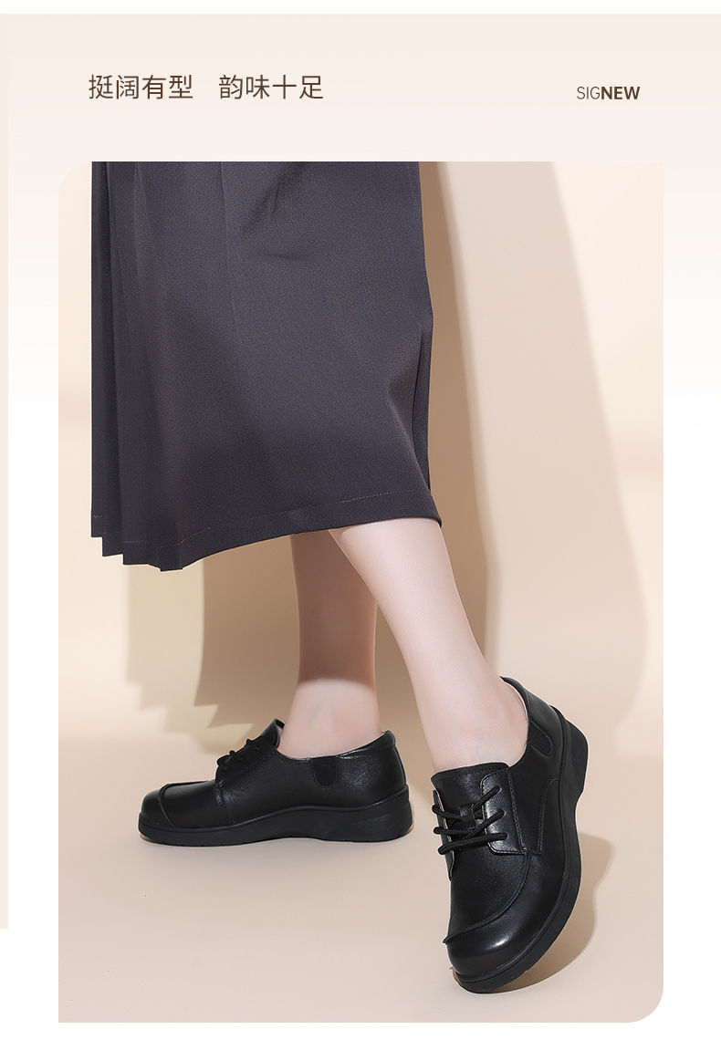 信诺真皮平底女鞋2024秋季新款舒适软底单鞋妈妈鞋中老年皮鞋Q2023-1