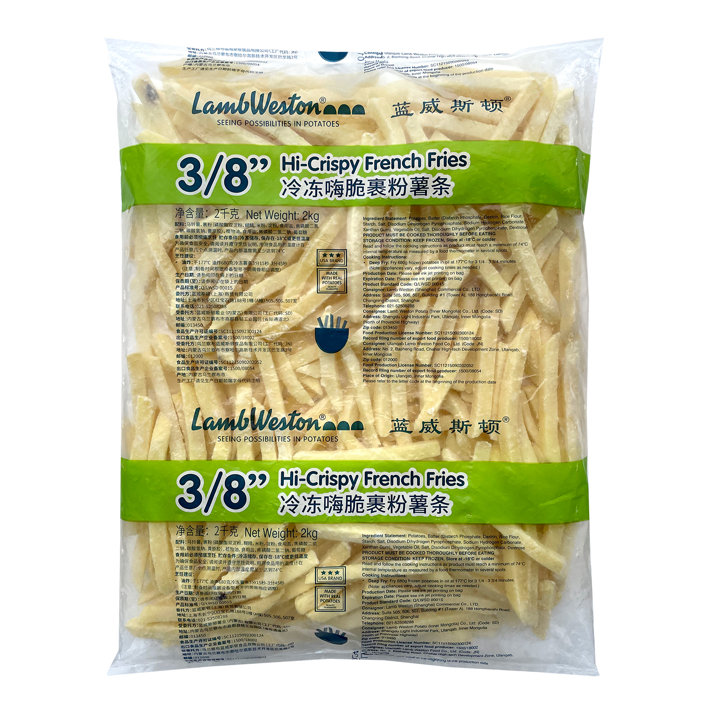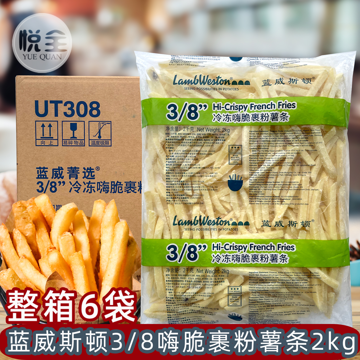 蓝威斯顿3/8英寸冷冻嗨脆裹粉薯条2kg咸味裹粉粗薯餐饮外卖专用薯条半成品UT308