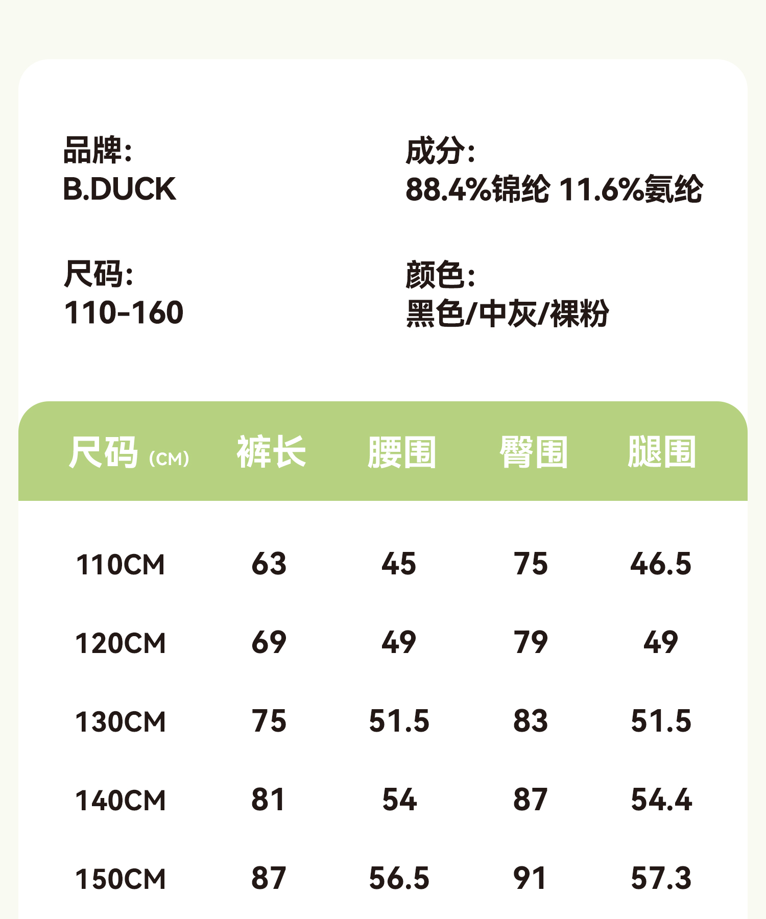 B.Duck小黄鸭童装春秋针织裤105-150 BF3663030