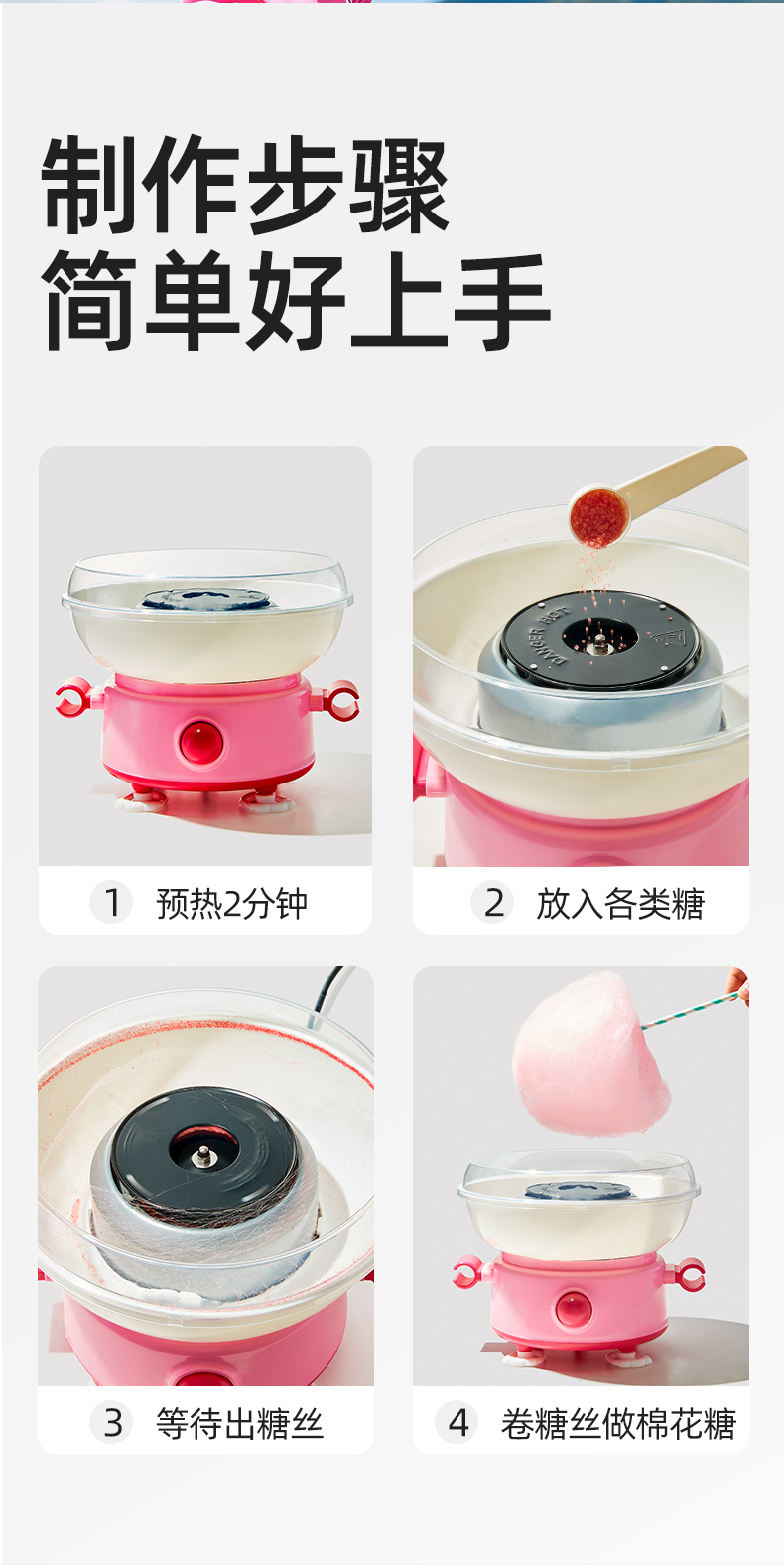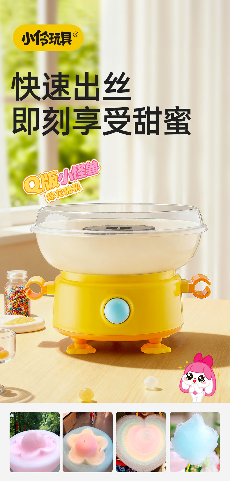 【快速出丝的Q版棉花糖机】小伶玩具棉花糖机器 儿童家用小型迷你DIY手工全自动商用手工制作玩具