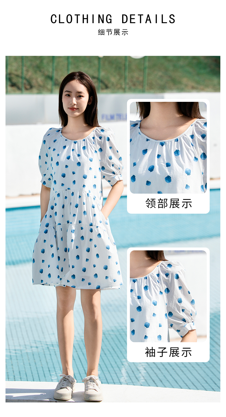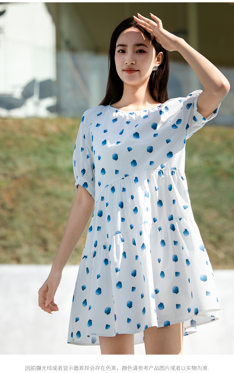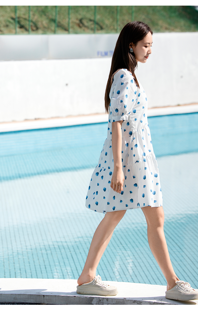 NUTS夏季新款法式复古印花连衣裙女气质收腰短袖裙子429101353