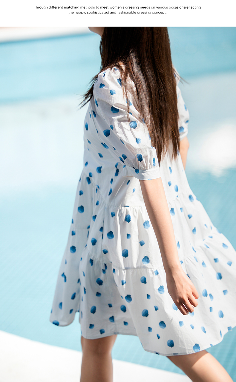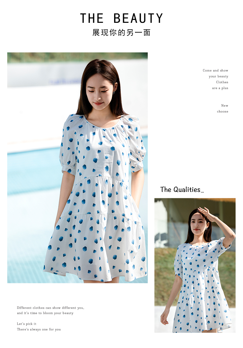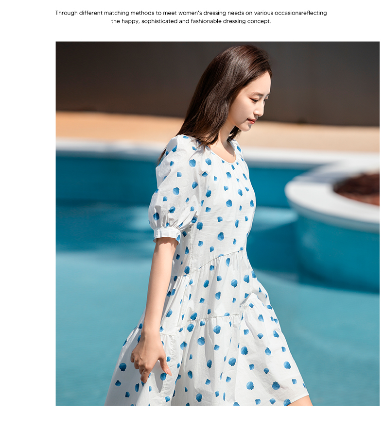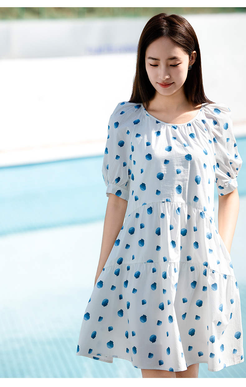 NUTS夏季新款法式复古印花连衣裙女气质收腰短袖裙子429101353