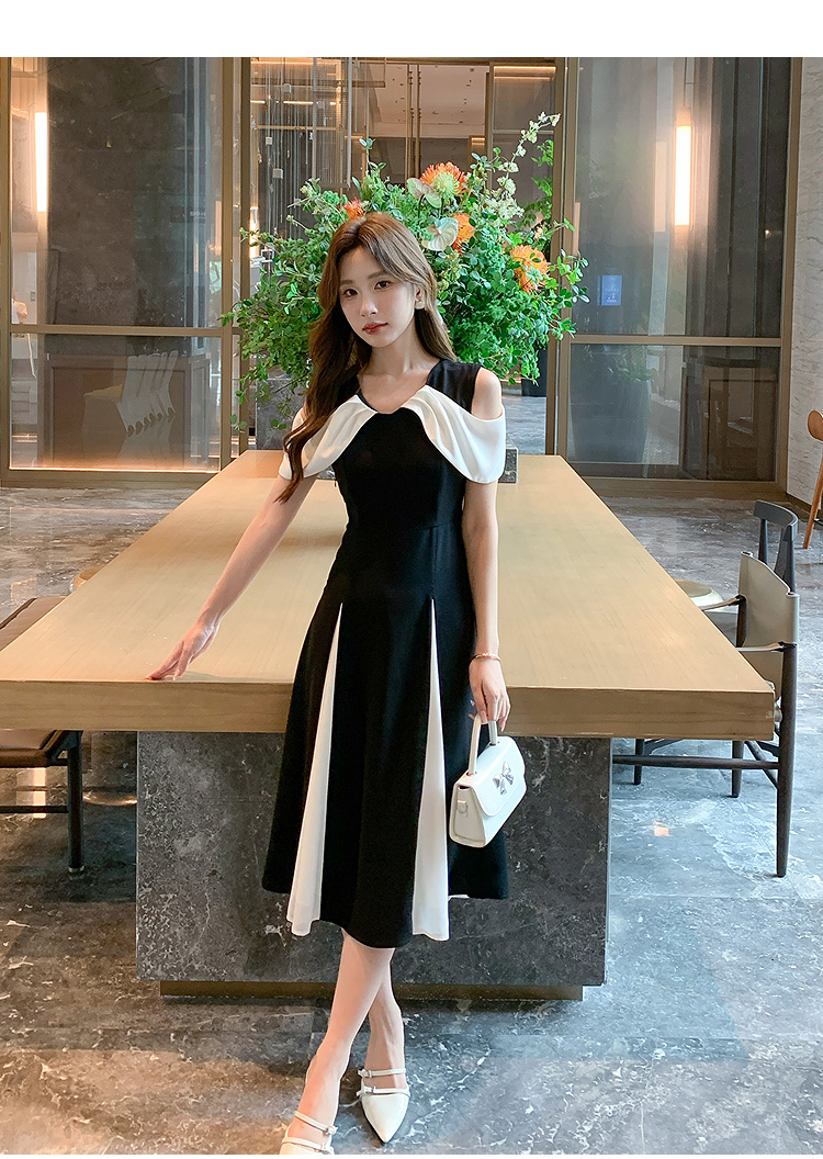 奢姿大码女装2025夏季时尚减龄撞色连衣裙胖妹妹优雅设计感裙子9952802011A