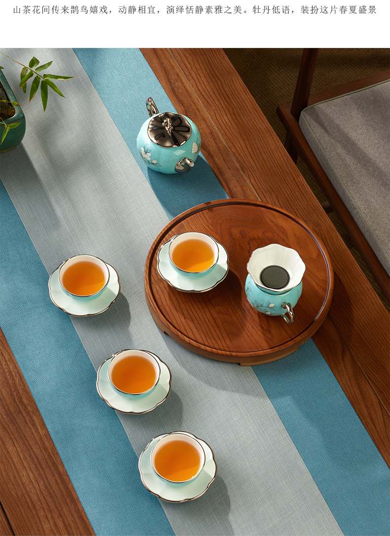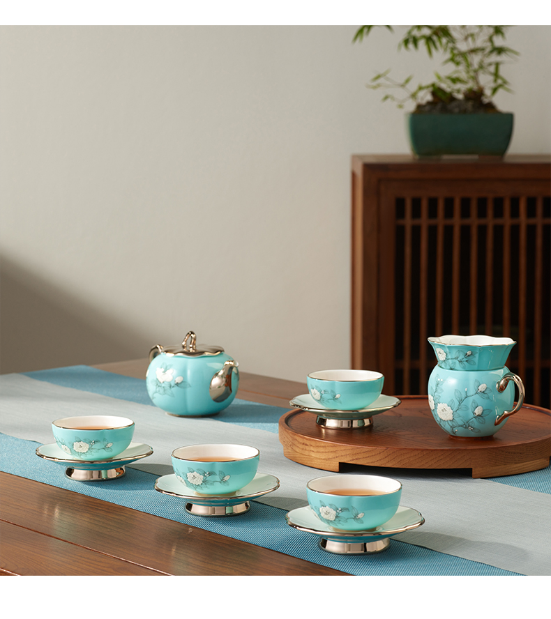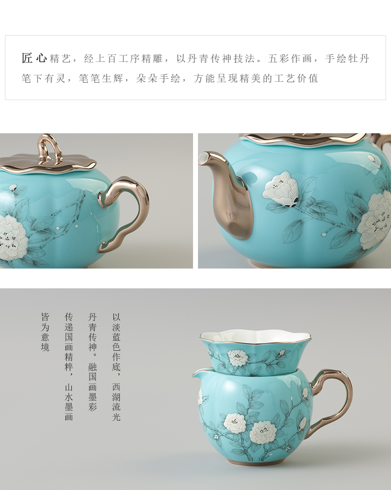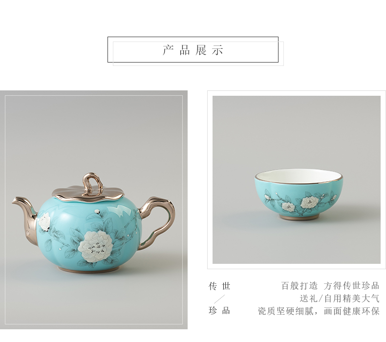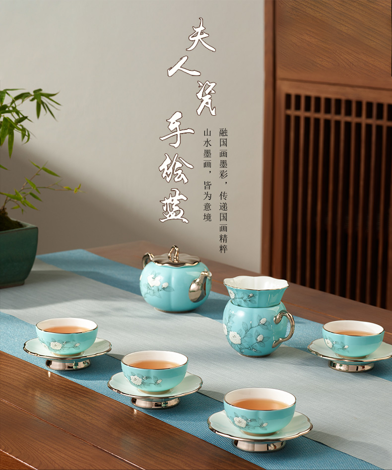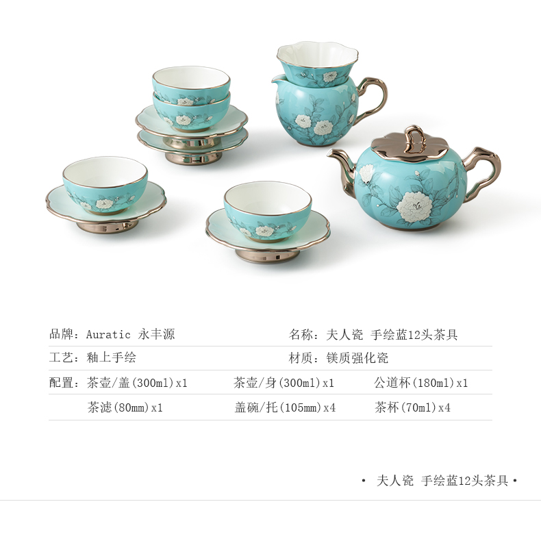 【国瓷·永丰源】手绘蓝12头茶具 陶瓷茶杯套装 轻奢礼品