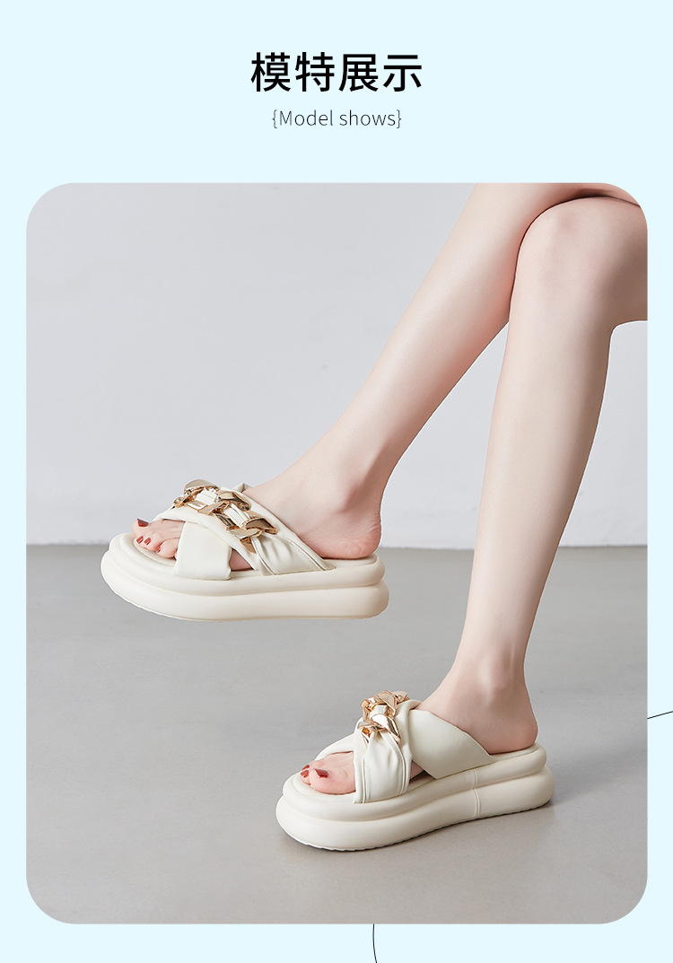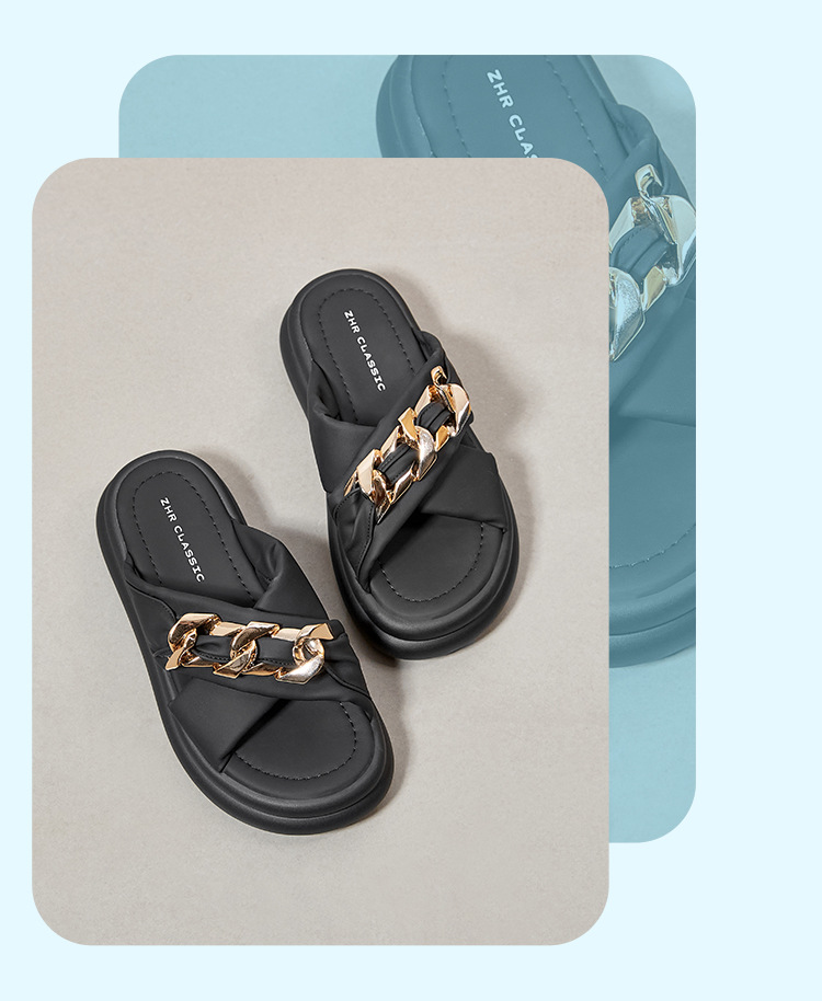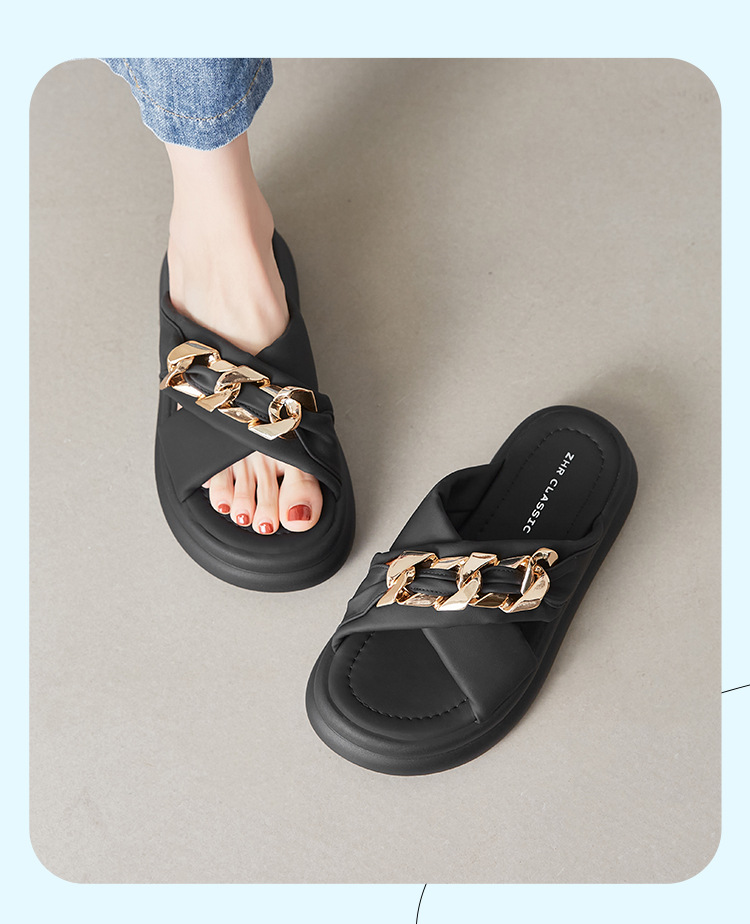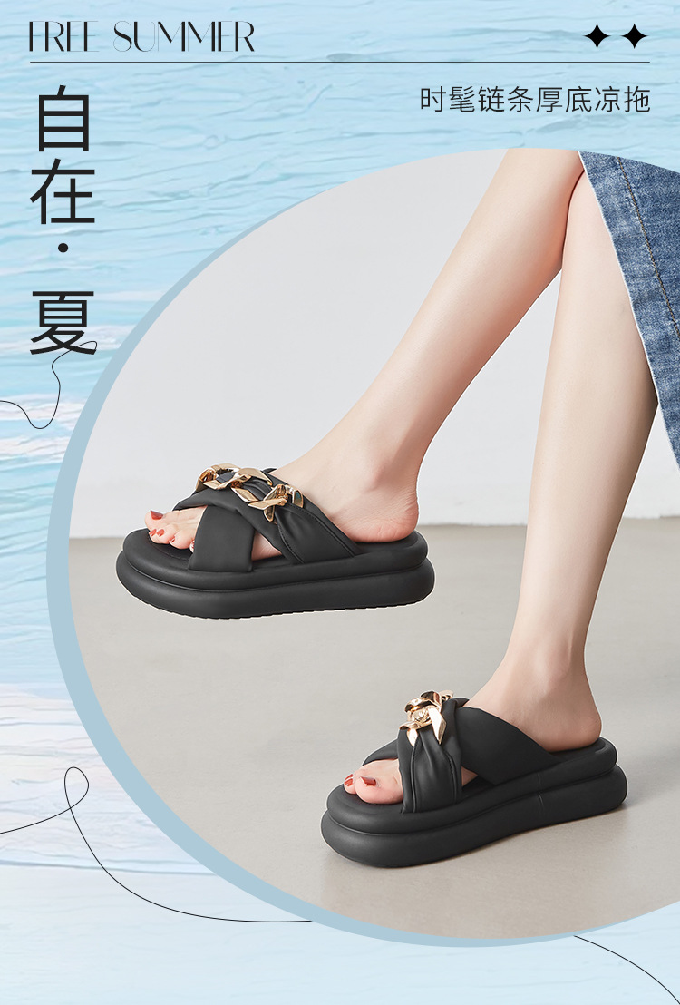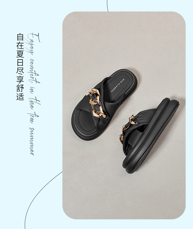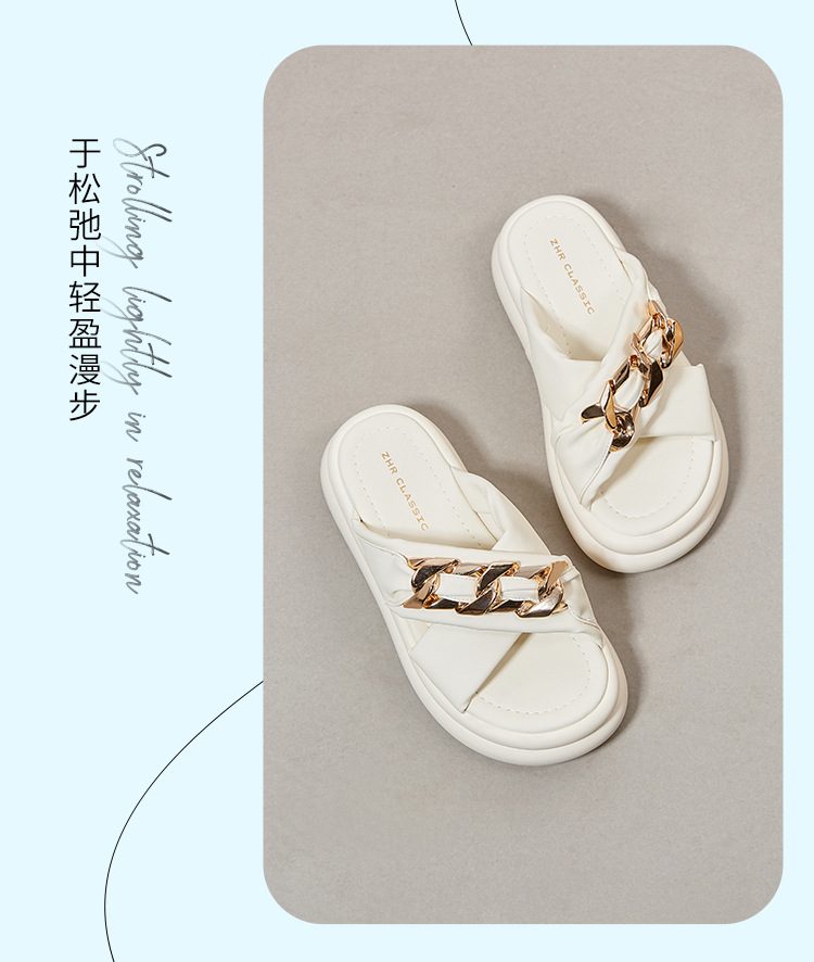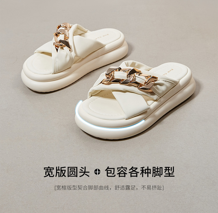 ZHR宽版圆头高颜值外出拖鞋女款超软时尚链条厚底轻盈设计凉拖女