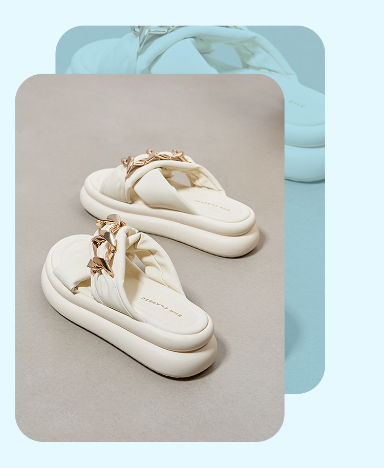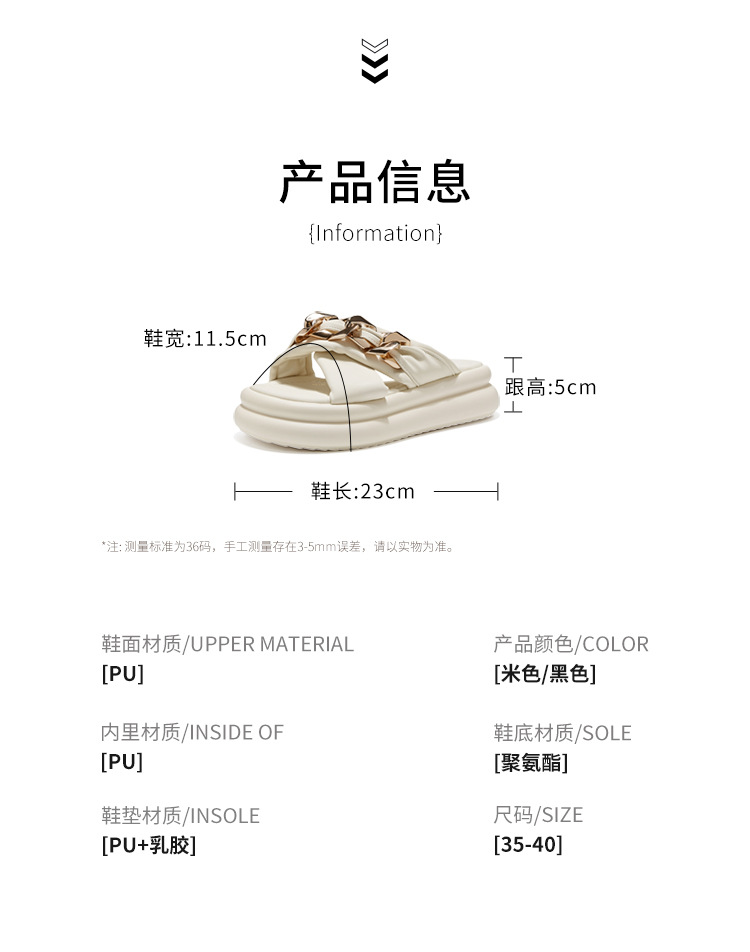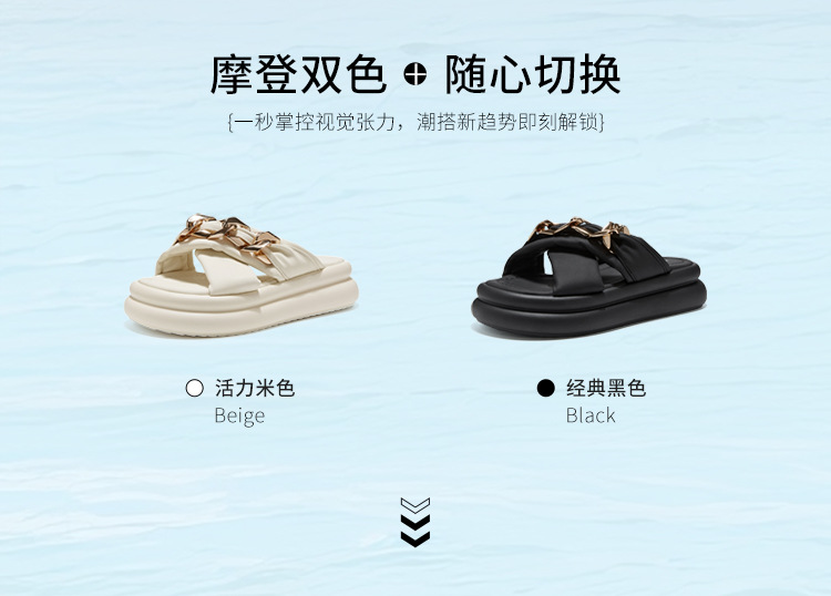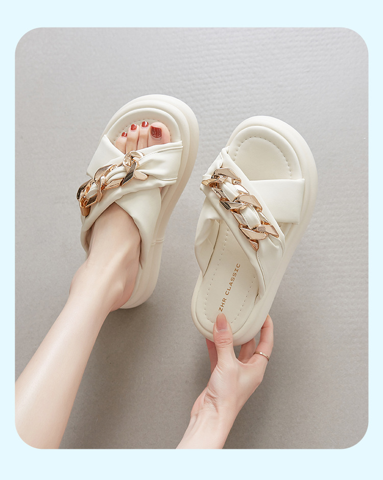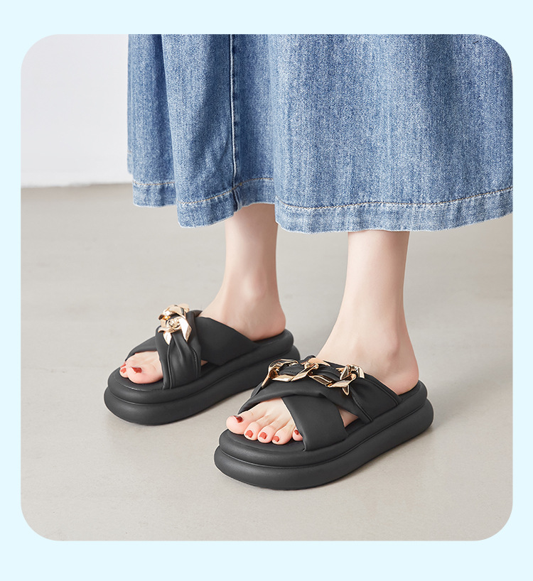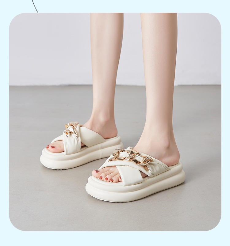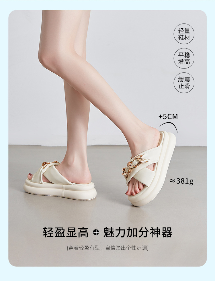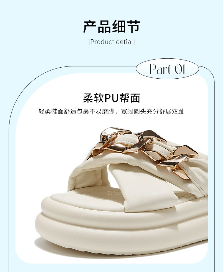 ZHR宽版圆头高颜值外出拖鞋女款超软时尚链条厚底轻盈设计凉拖女