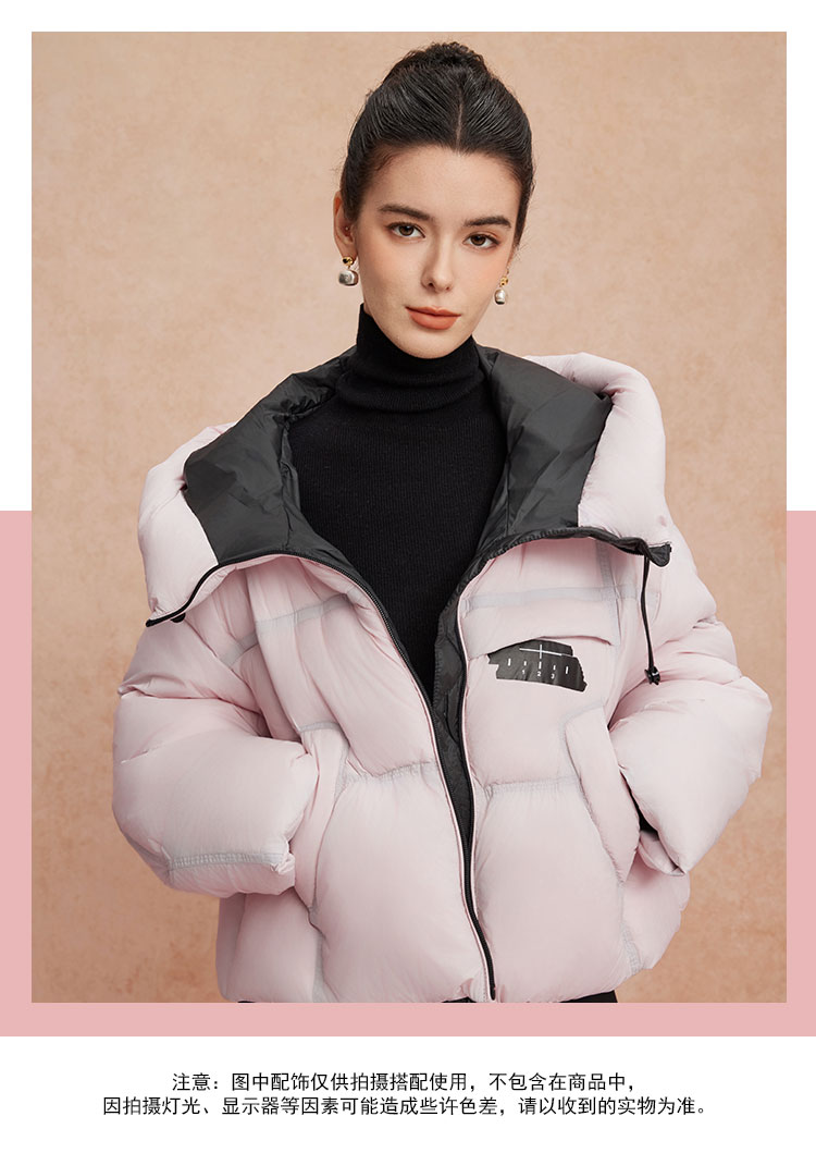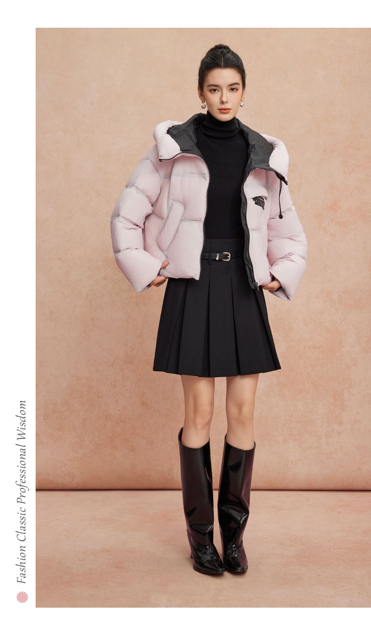 QR005斯尔丽2025新款轻盈感休闲双层朦胧效果设计感时尚减龄短款羽绒服