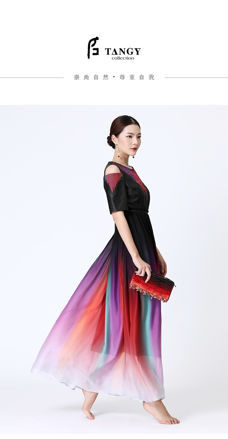 TANGY Collection天意雪纺莨绸绣花礼服裙