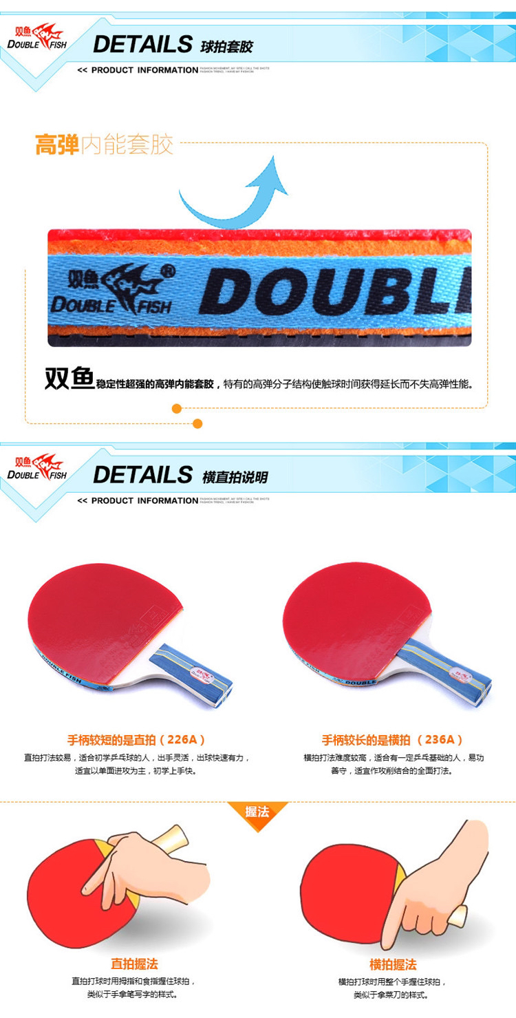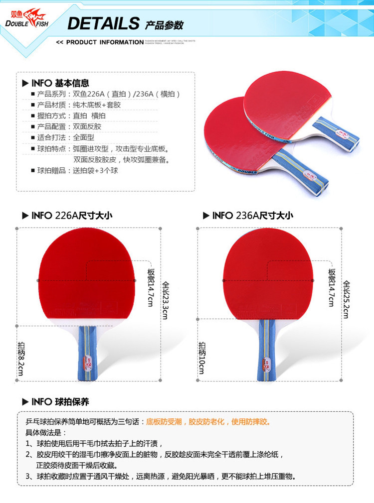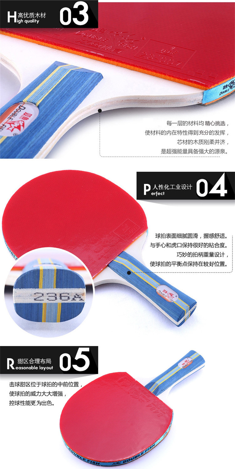 双鱼236A乒乓球拍套装(乒乓球拍+3个乒乓球)