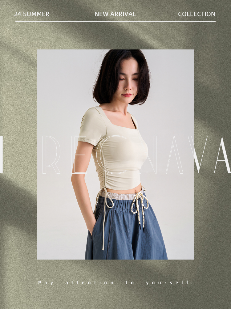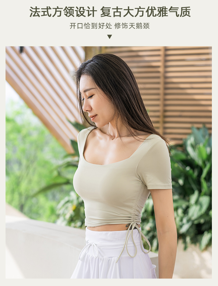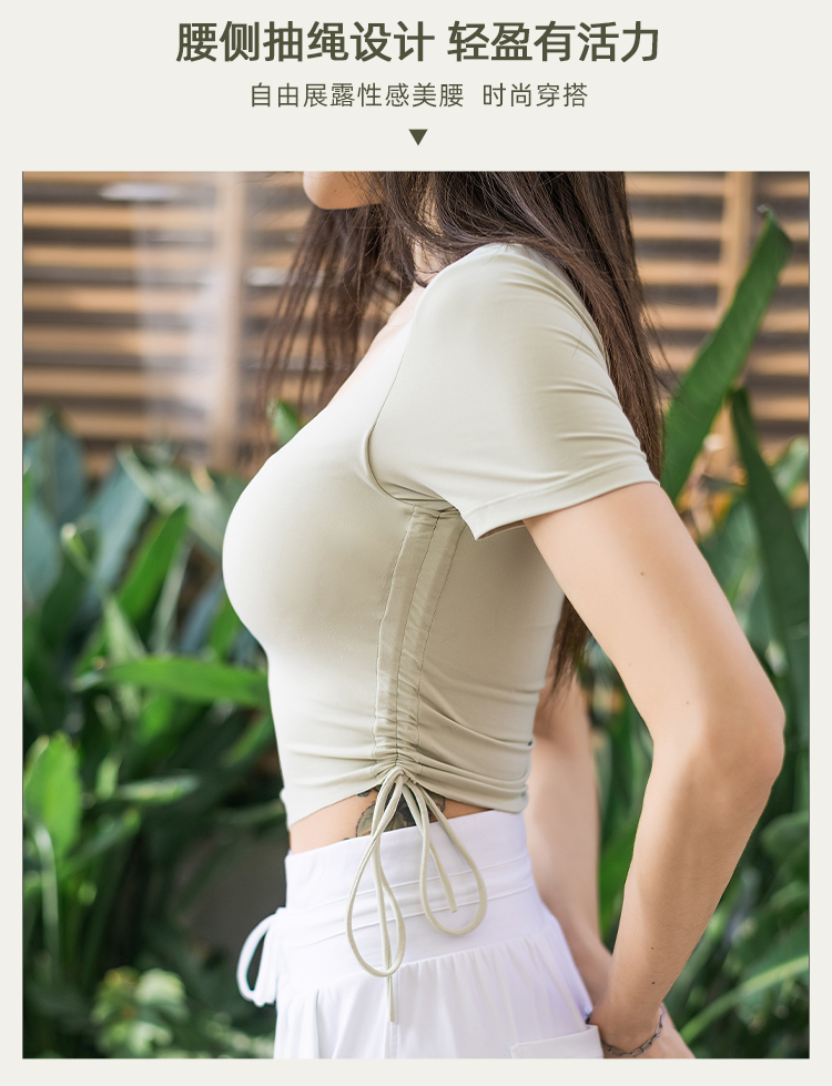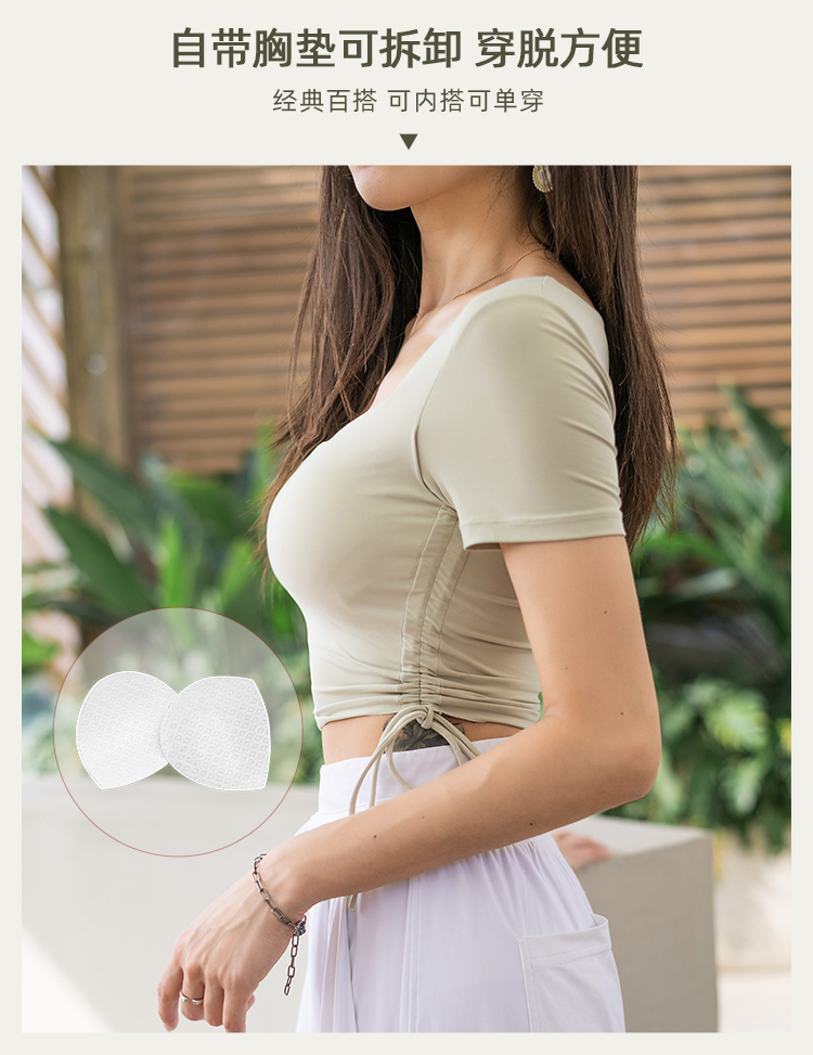 【裸感拼肌理】V领带胸垫瑜伽服上衣女短弹力紧身衣显瘦长袖