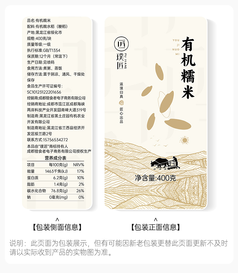璞匠有机糯米新米一级东北圆糯米糍粑米酒粽子烧麦黏米圆江米大米