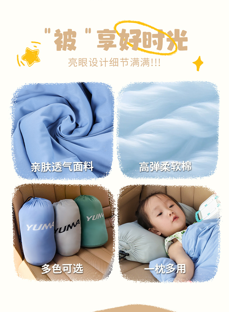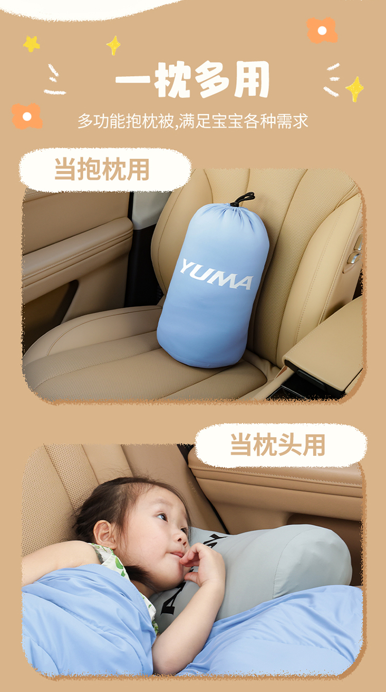 御马汽车儿童抱枕被子两用毯子二合一车用冰丝被加厚车载靠枕被