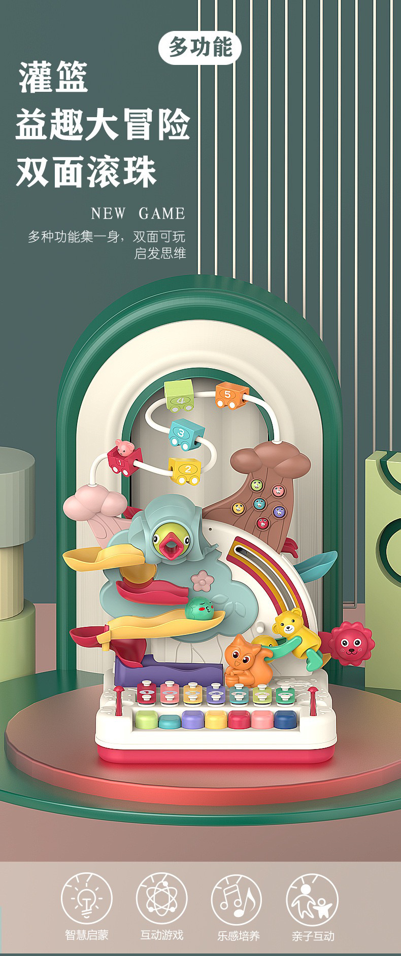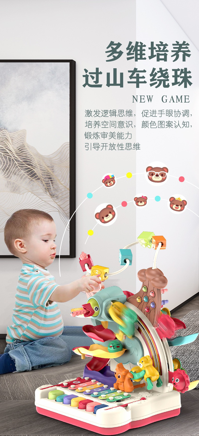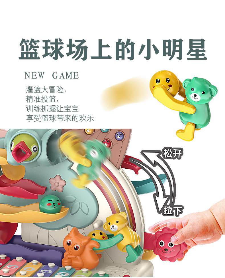 【荣民】BY808-25多功能宝宝智力早教益智大冒险 八音手敲琴玩具 婴幼儿串珠翻滚车