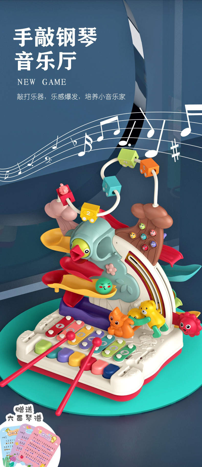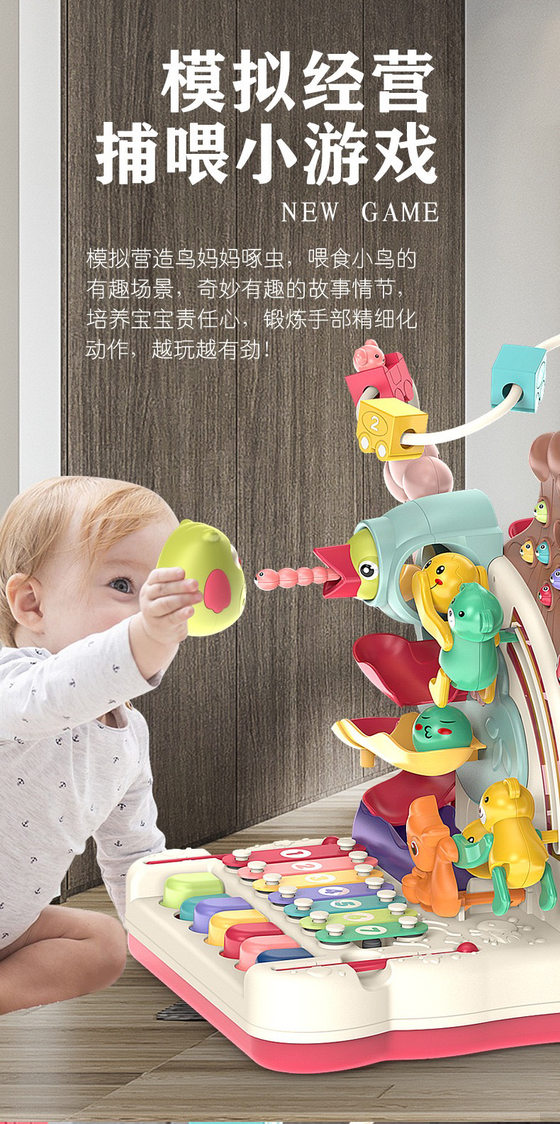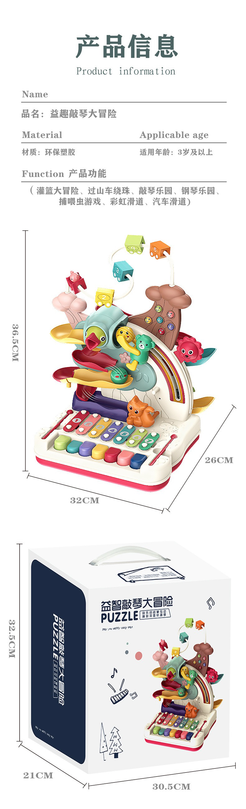【荣民】BY808-25多功能宝宝智力早教益智大冒险 八音手敲琴玩具 婴幼儿串珠翻滚车