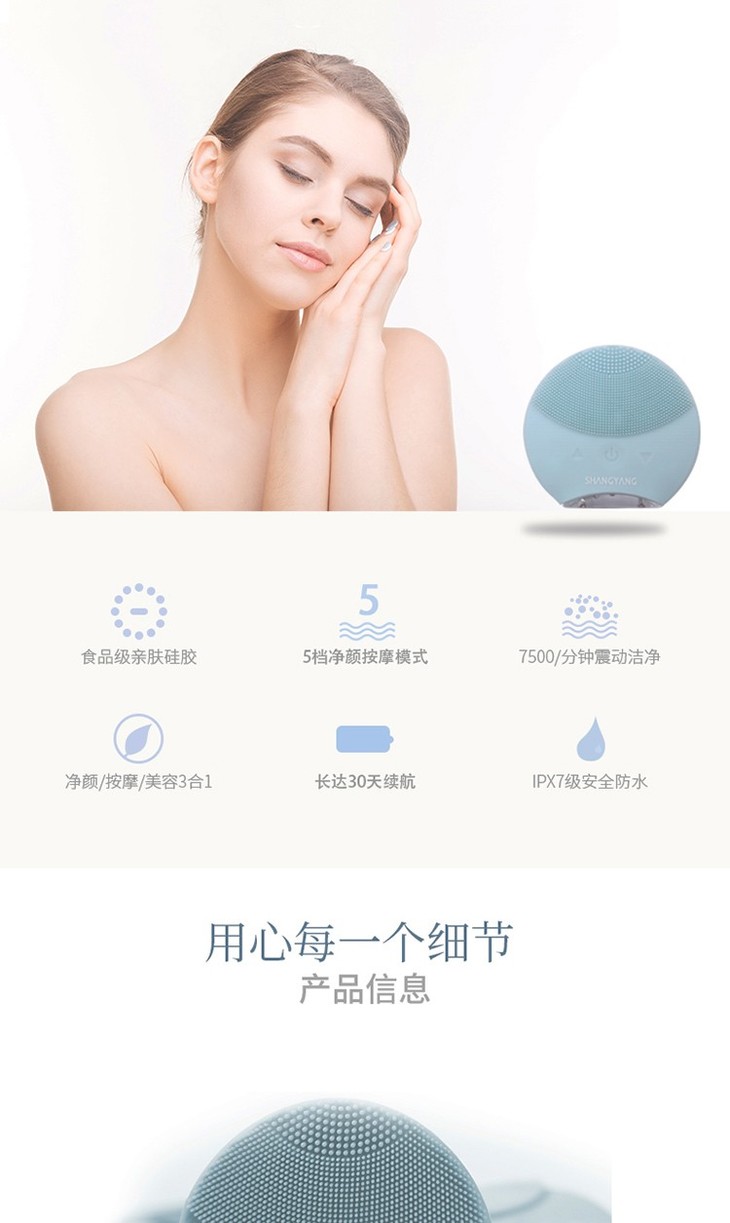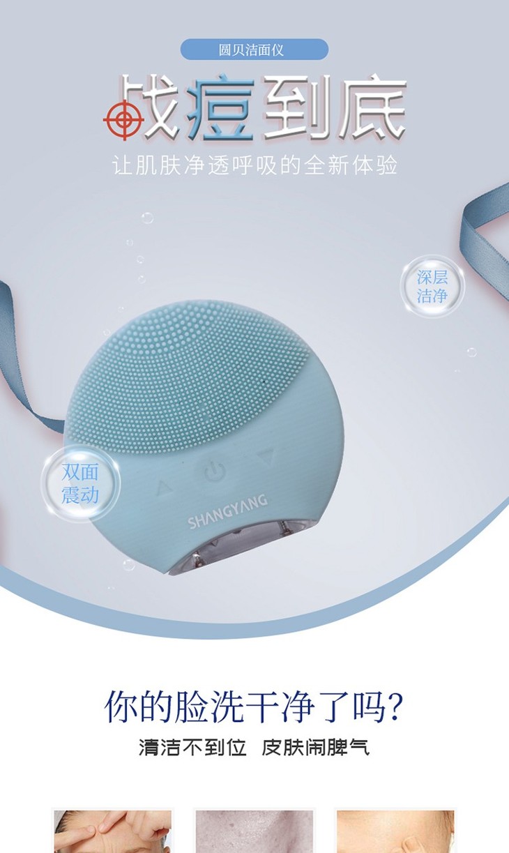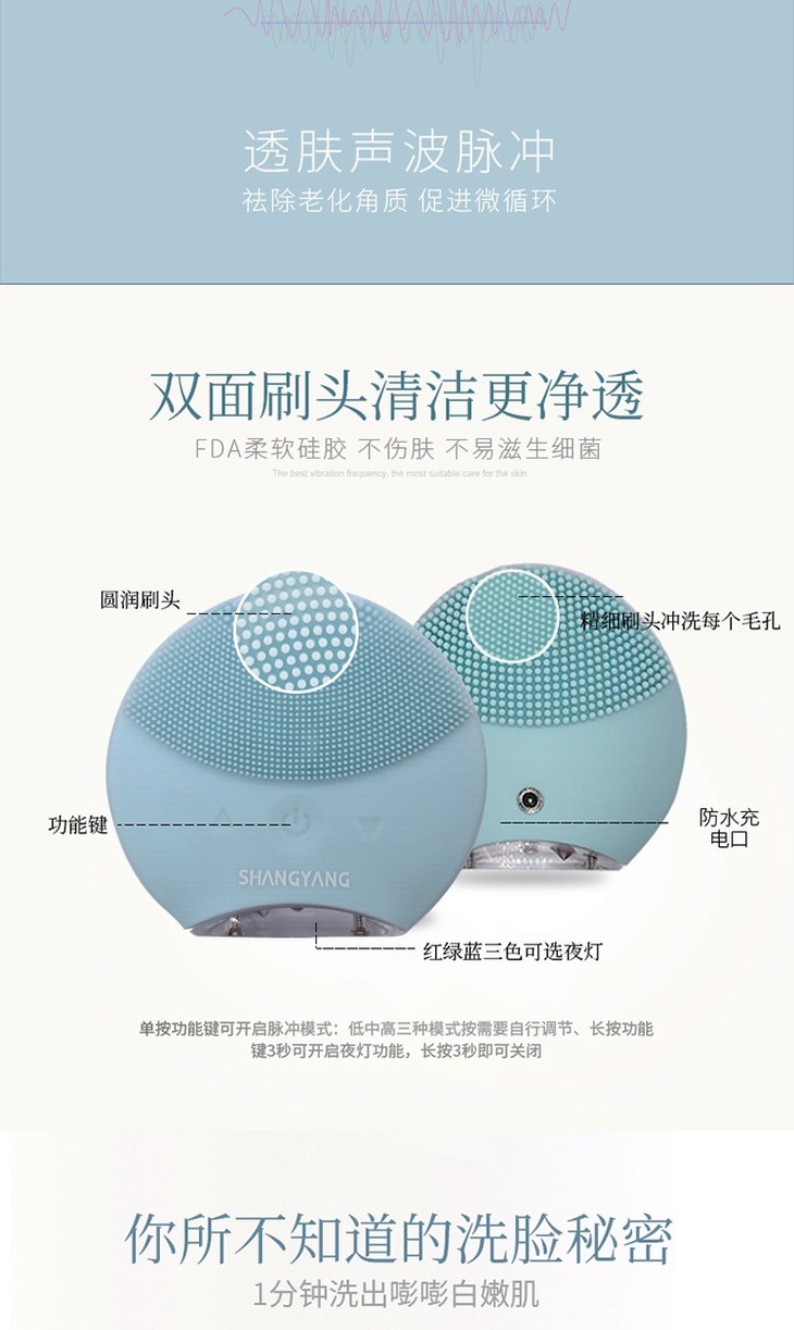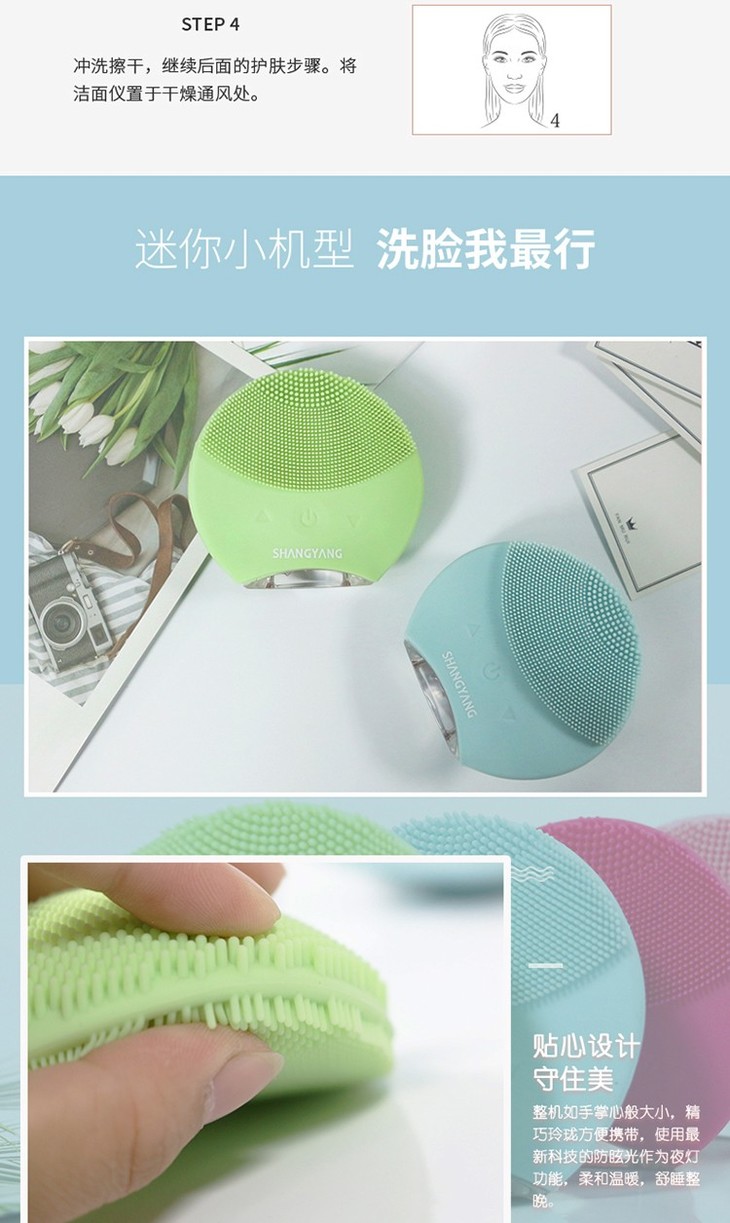 【一般贸易】尚洋SY洗脸仪器毛孔清洁器电动充电式圆贝款洁面仪薄荷绿