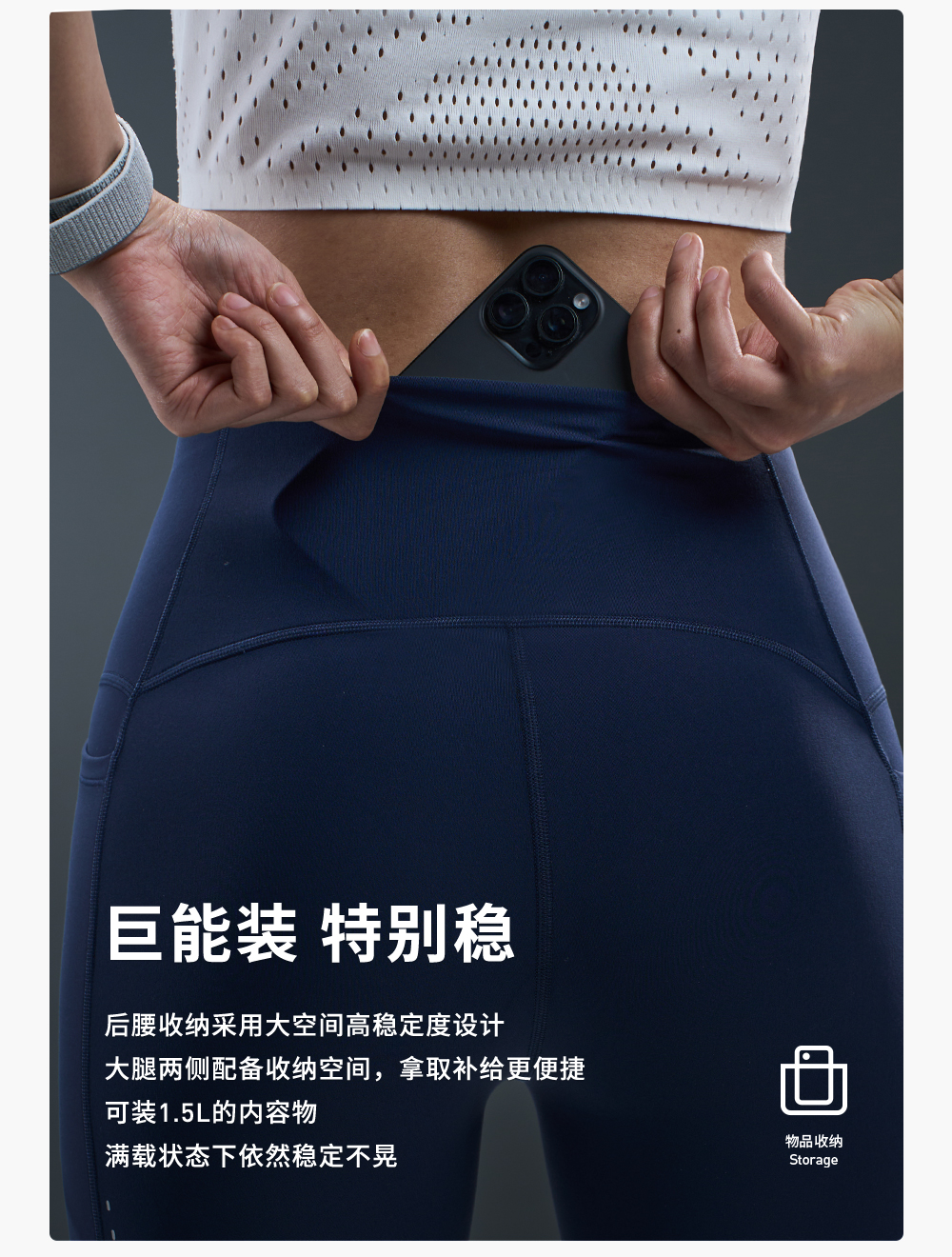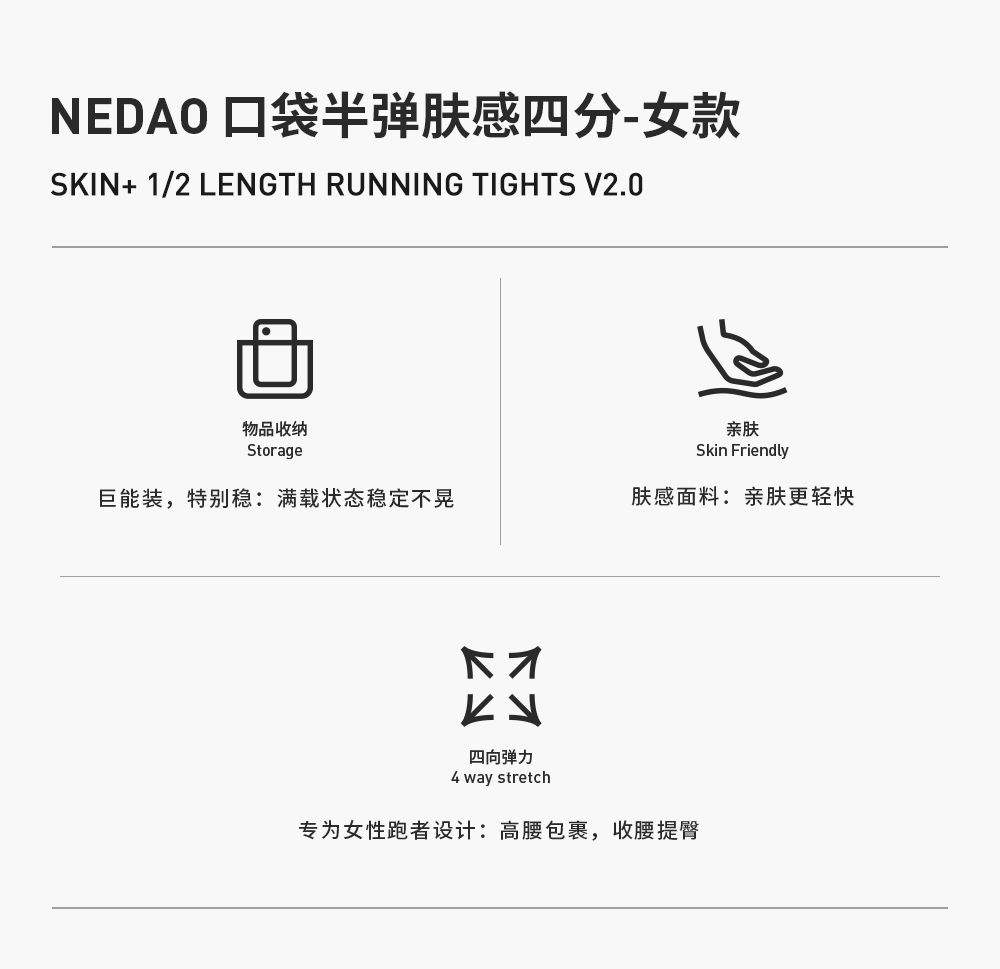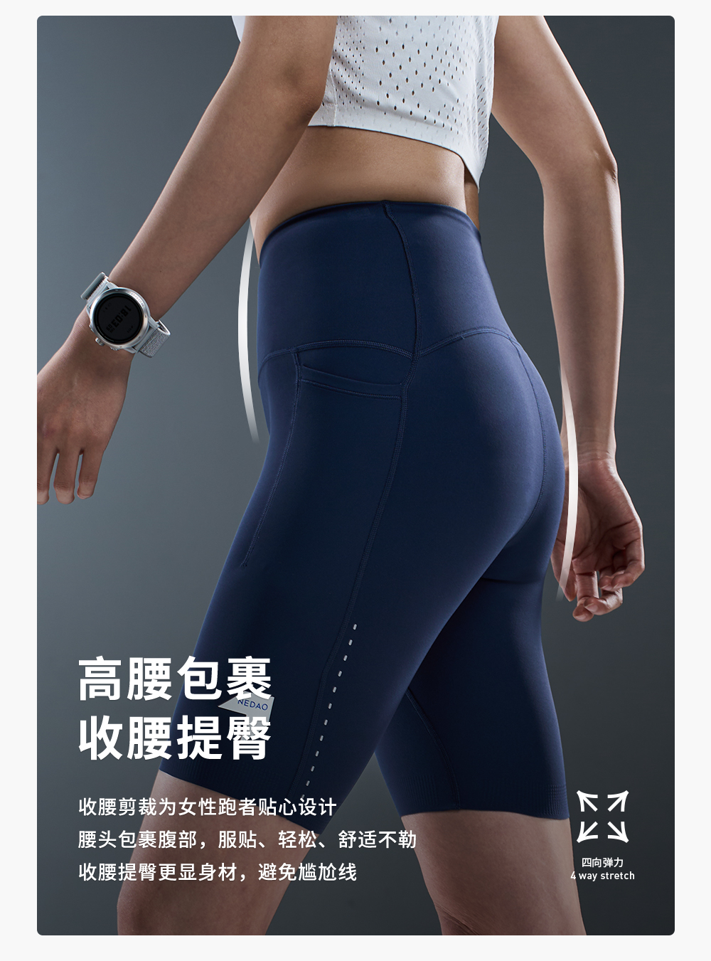 NEDAO内道女子越野跑马拉松高弹肤感收纳四分防滑跑步紧身裤