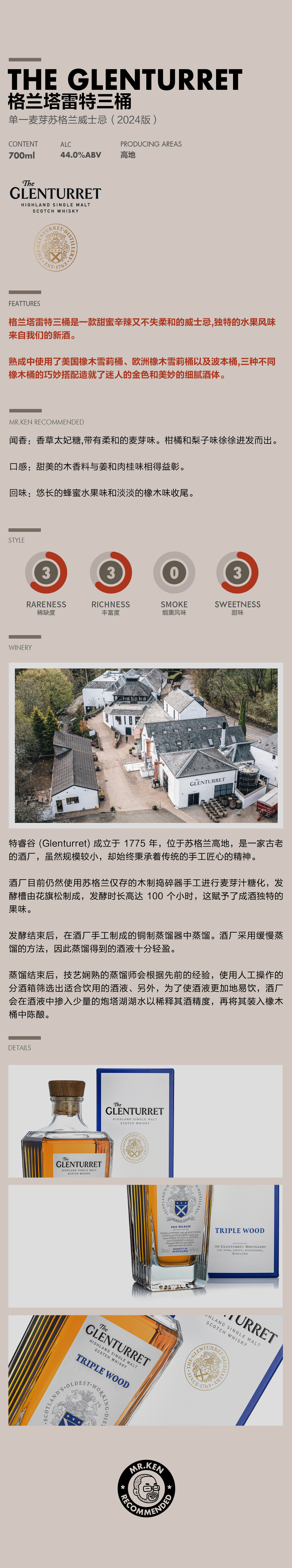 格兰塔雷特(The Glenturret)三桶单一麦芽苏格兰威士忌(2024版)