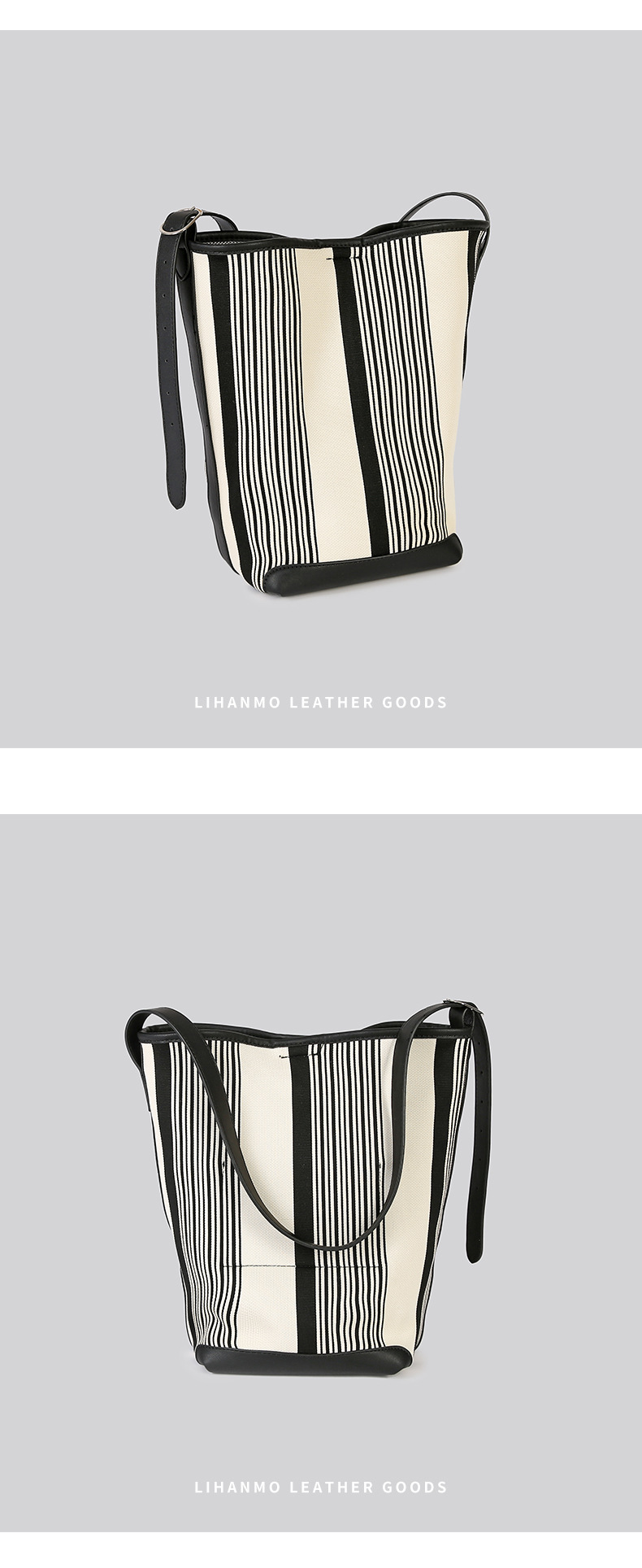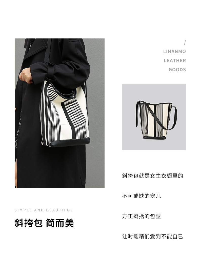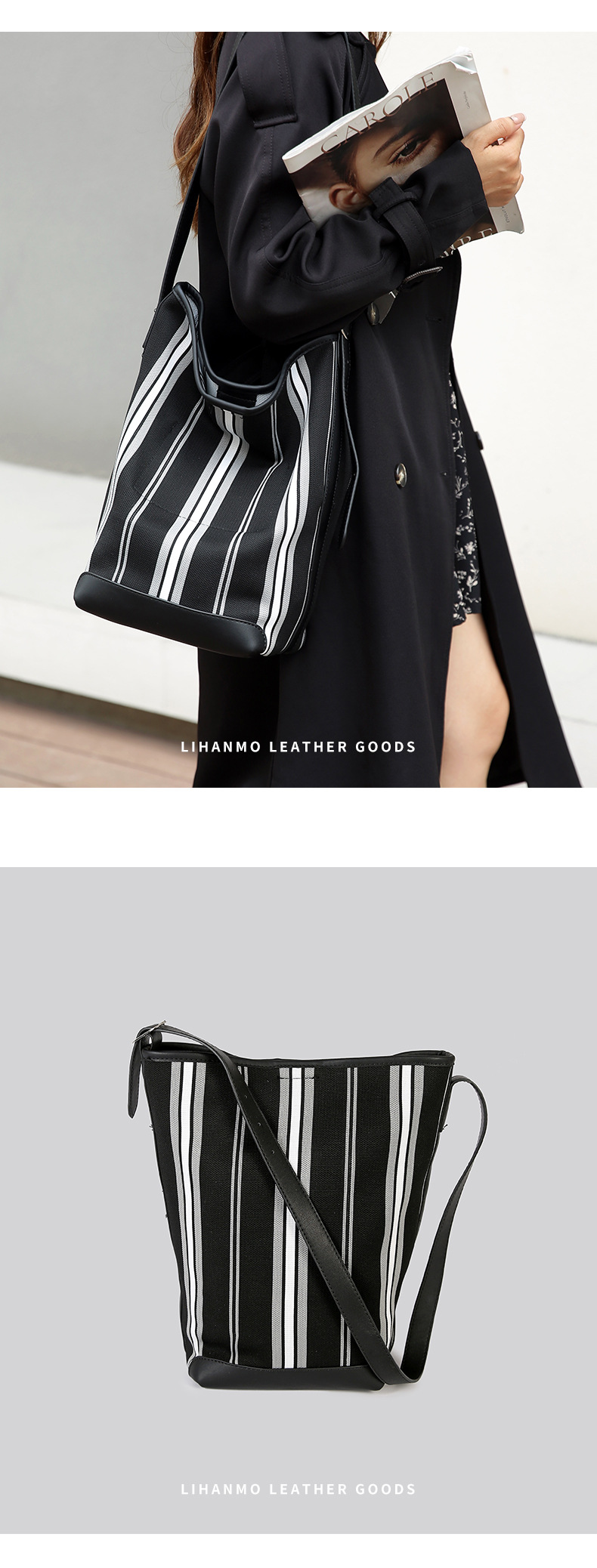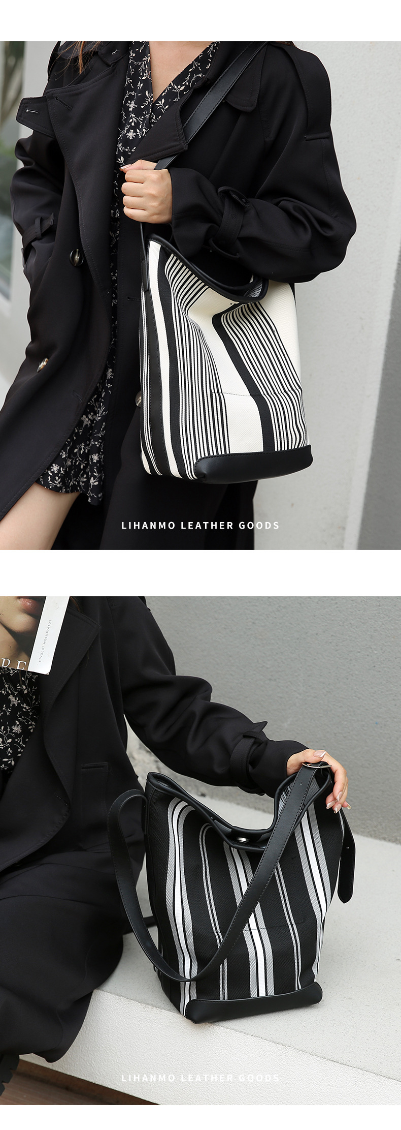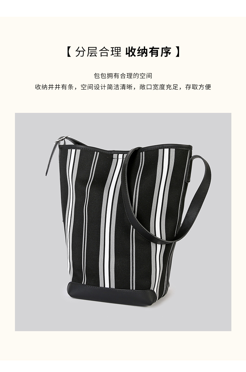 【韩版复古格纹水桶包】撞色时尚条纹手提包 通勤时尚单肩包 大容量