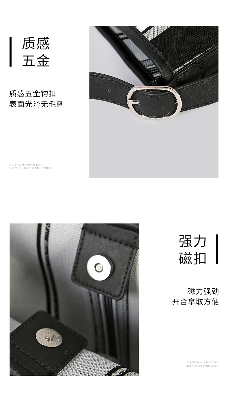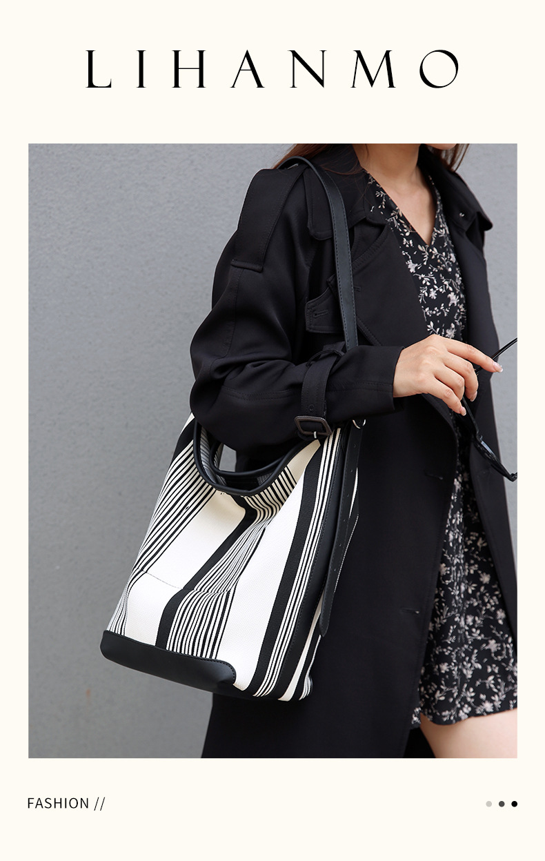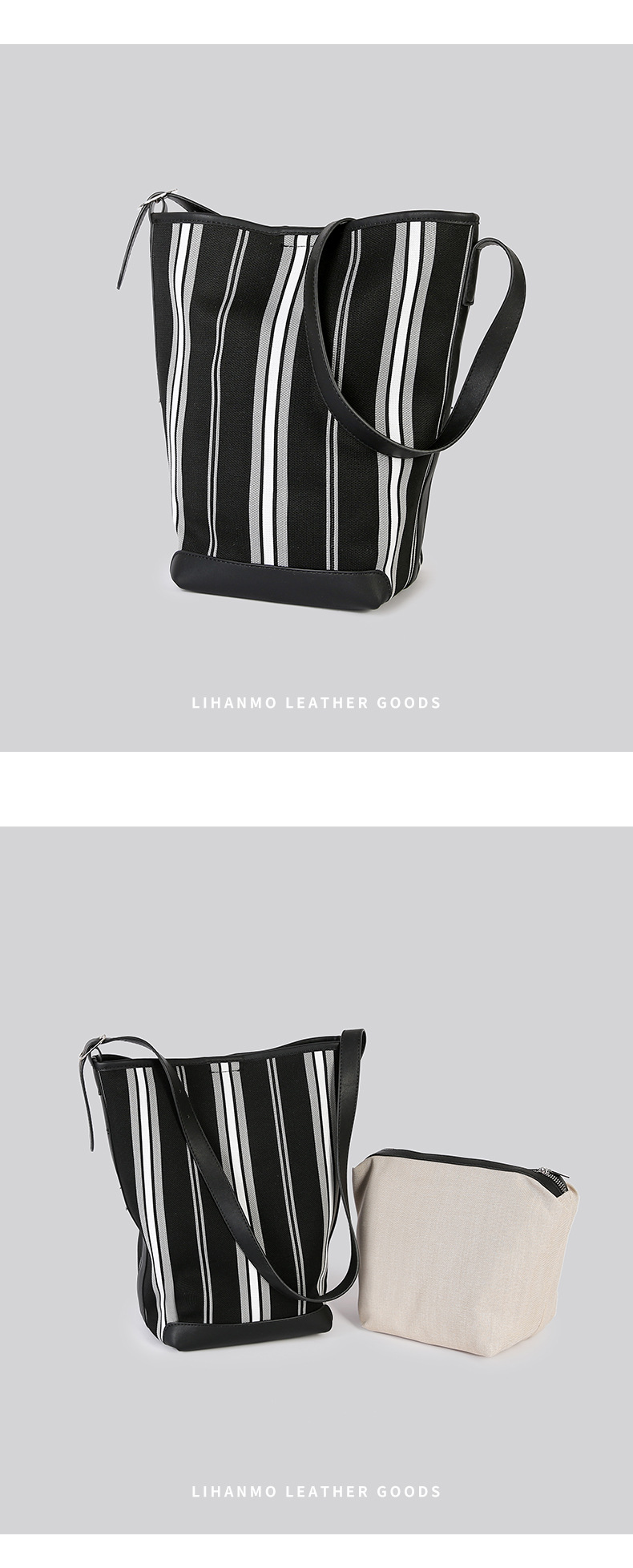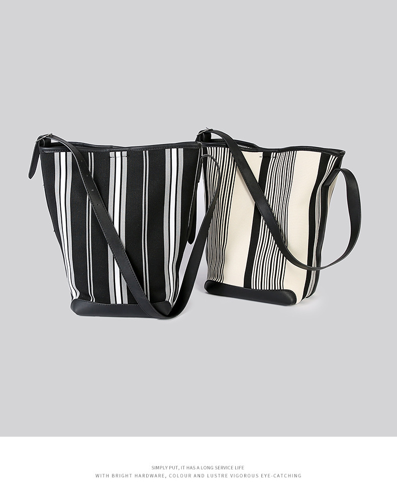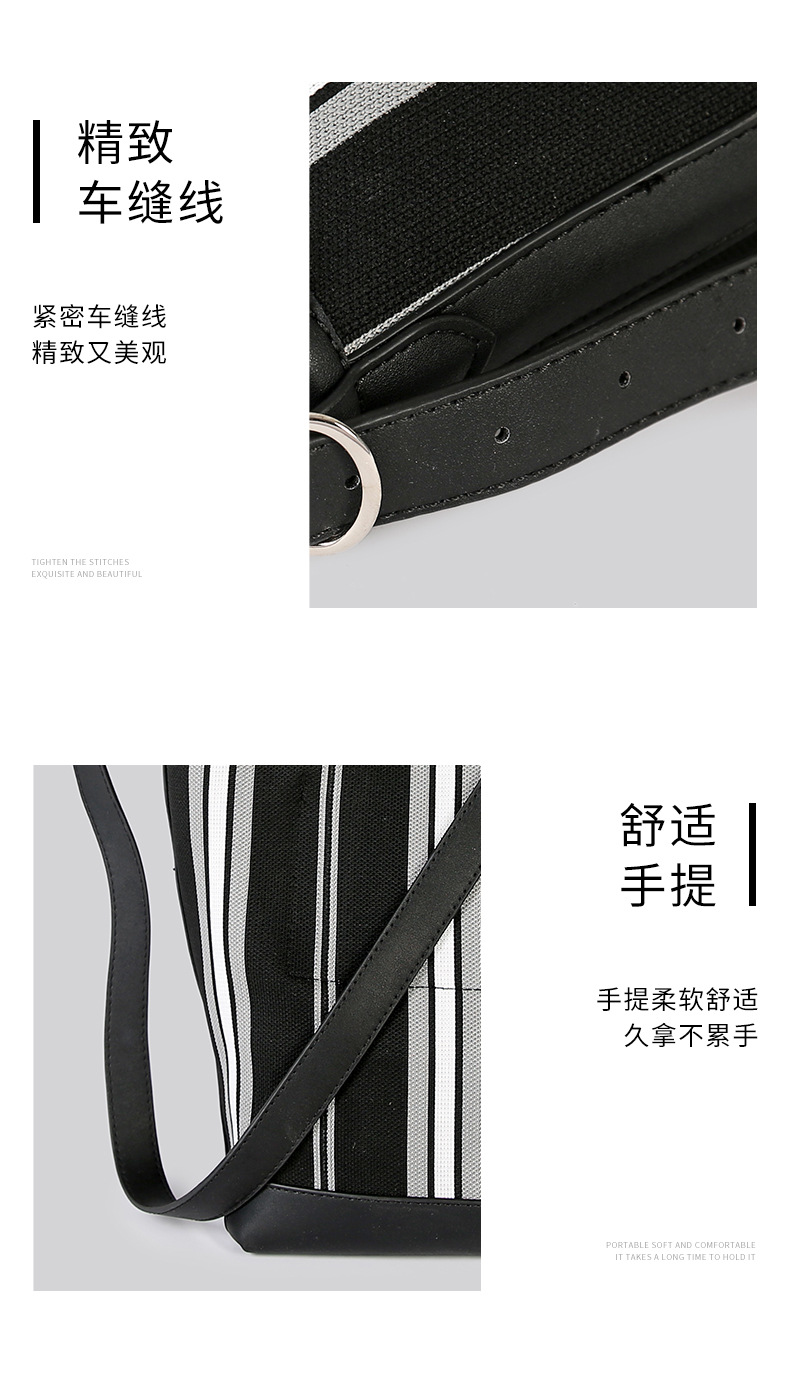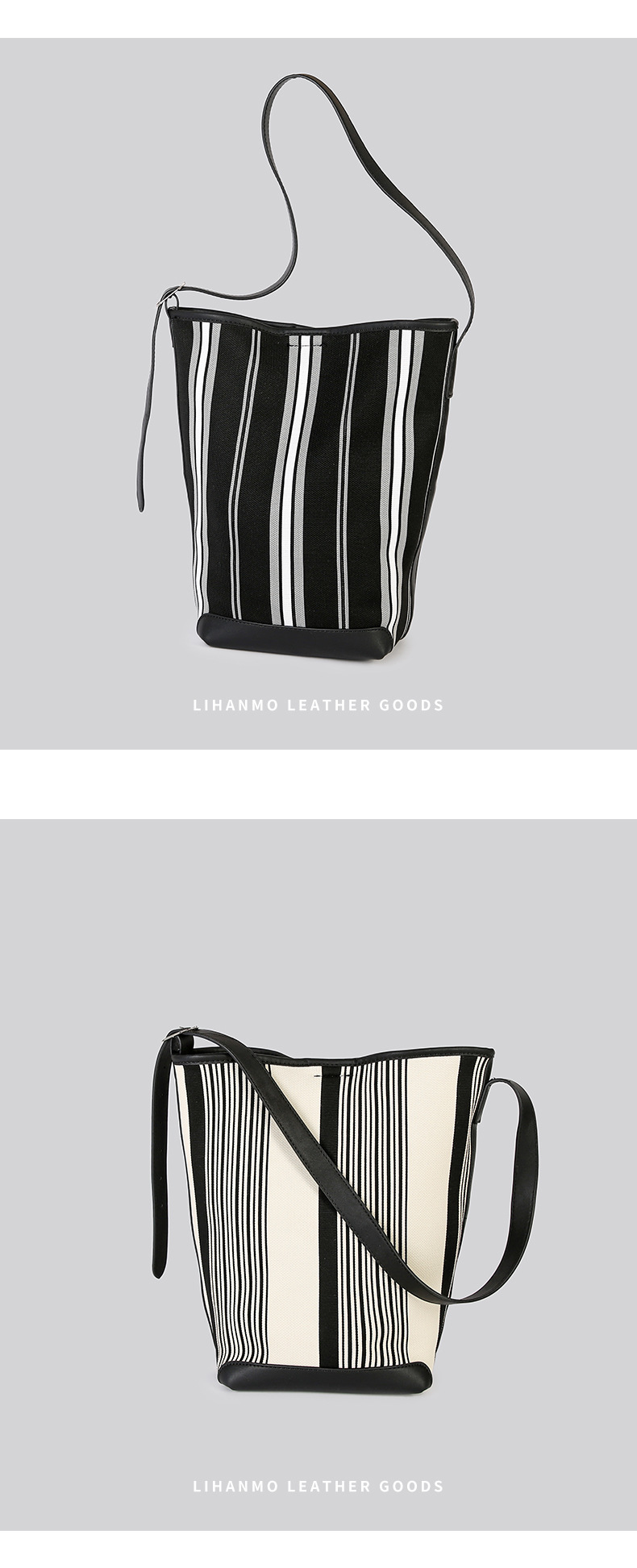 【韩版复古格纹水桶包】撞色时尚条纹手提包 通勤时尚单肩包 大容量