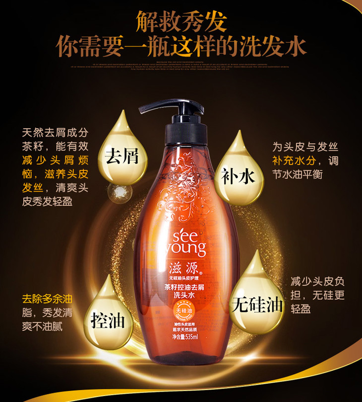 滋源-535ml商超茶籽控油去屑洗头水(油性)