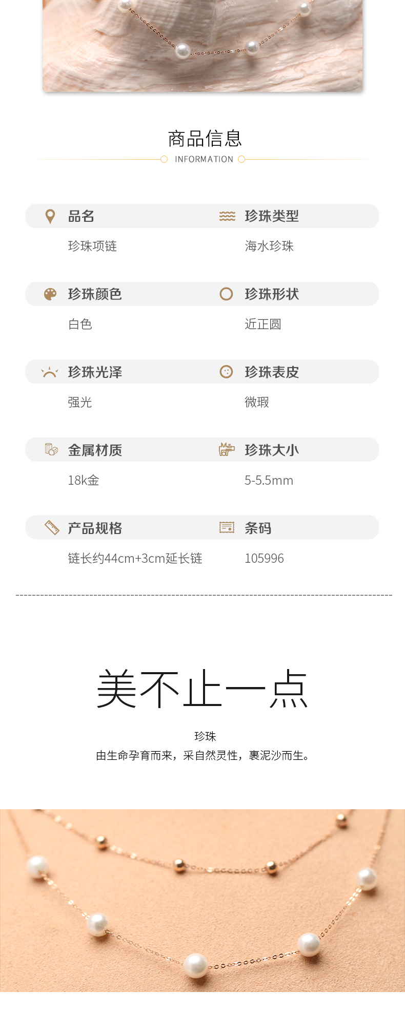 美裕 【星澜】金18K海水珍珠链牌 5-5.5mm白 105996