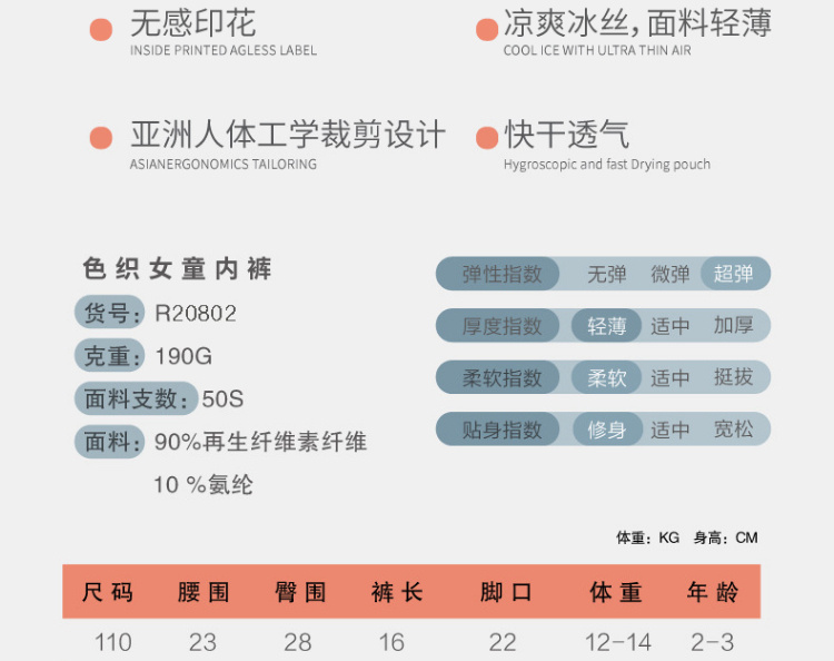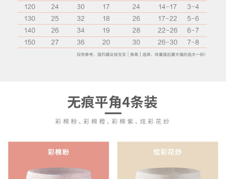 【舒蒂童装】女童平角无痕内裤四条装