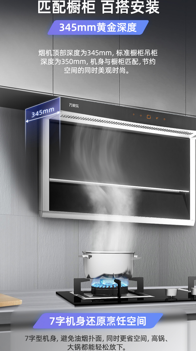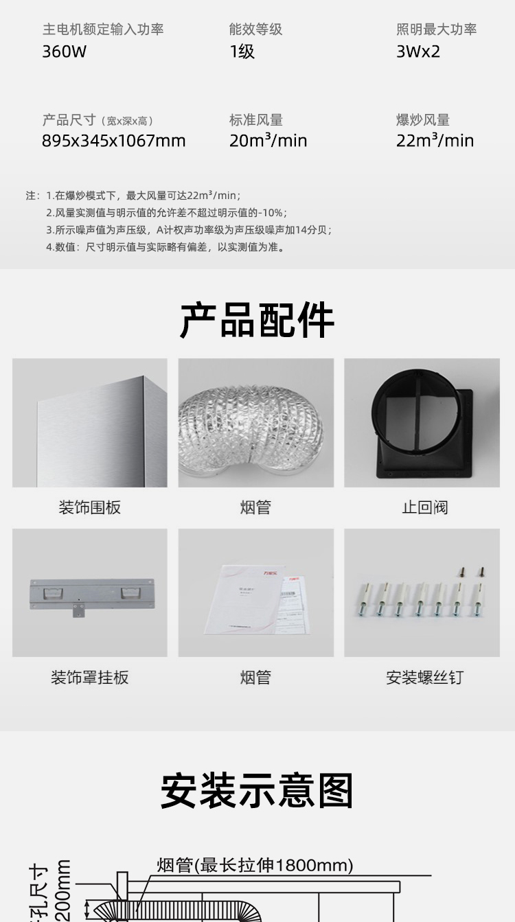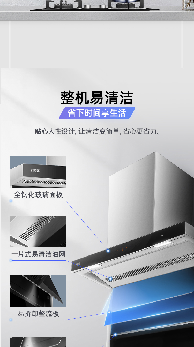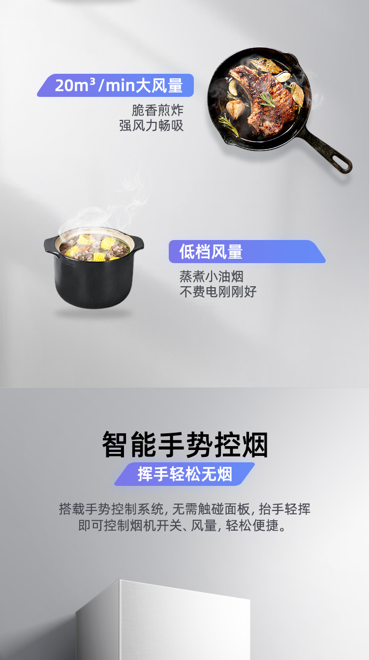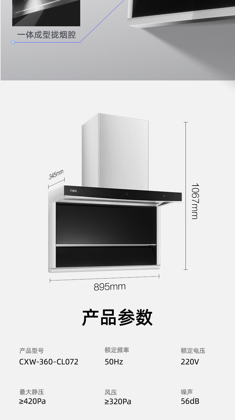 万家乐 油烟机 22立方 爆炒大吸力 钢化玻璃面板 顶侧双吸 挥手智控 家用脱排油烟机CXW-360-CL072