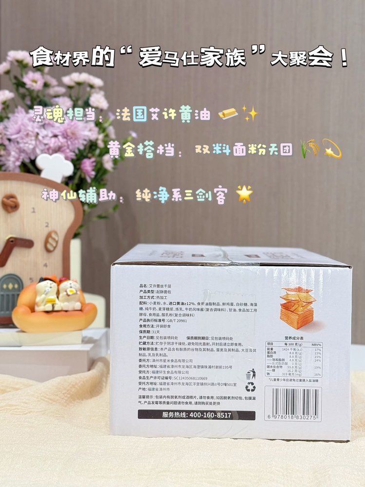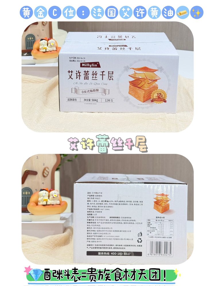1️⃣ 灵魂担当:法国艾许黄油 🧈✨它可是配料表的“C位大佬”!法国AOP认证的顶流黄油,自带浓郁发酵香气,每一口都是贵族奶香暴击!用它揉制的饼皮,就像给面包施了“柔软魔法”,直接香到上头!🤤