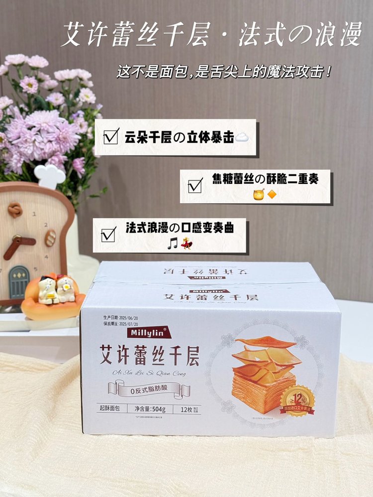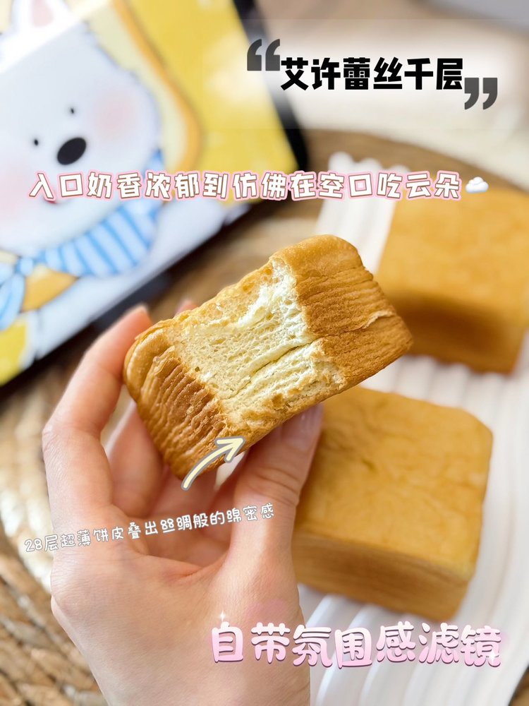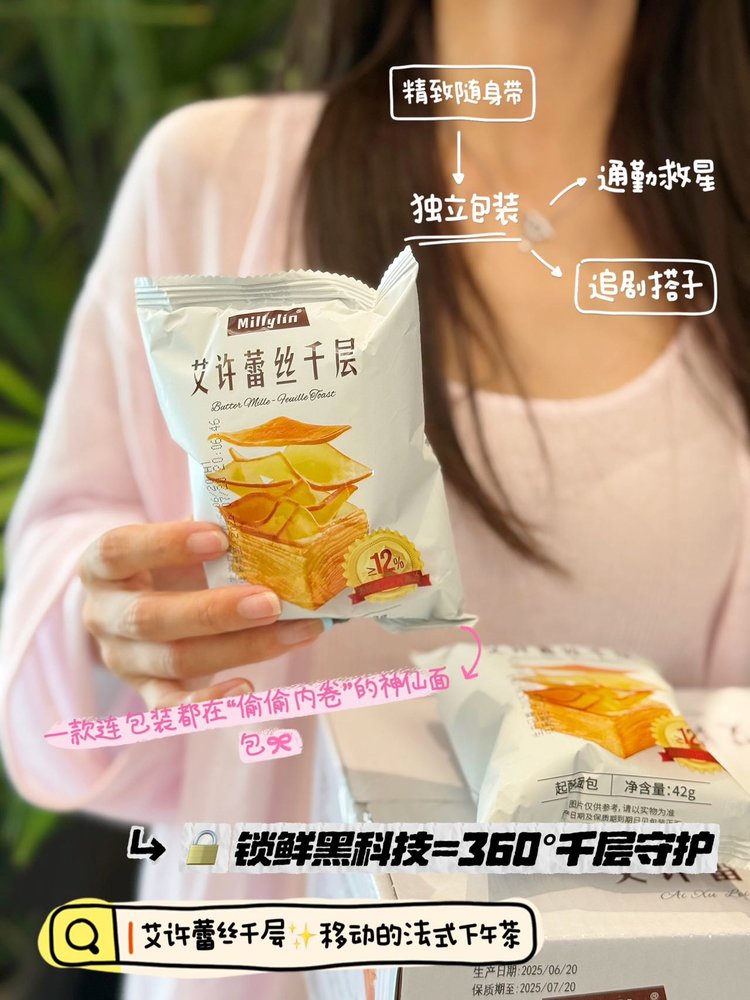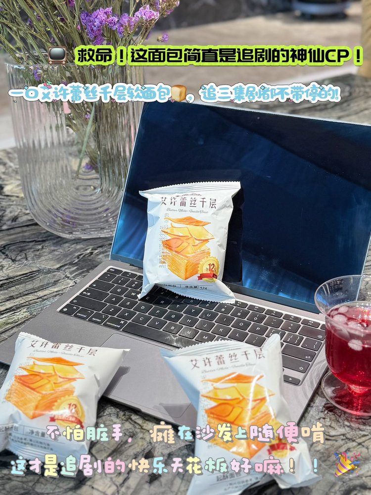 📺 这面包简直是追剧的神仙CP!一口艾许蕾丝千层软面包🍞,追三集剧都不带停的!蓬松到像云朵的饼皮,咬下去“duangduang”回弹边看剧边炫超解压~甜咸交织的奶香在嘴里跳舞💃,比剧情还上头!而且不怕脏手,瘫在沙发上随便啃,这才是追剧的快乐天花板好嘛!!🎉
