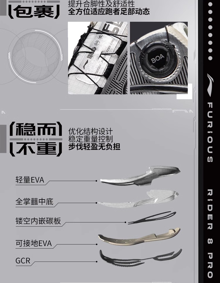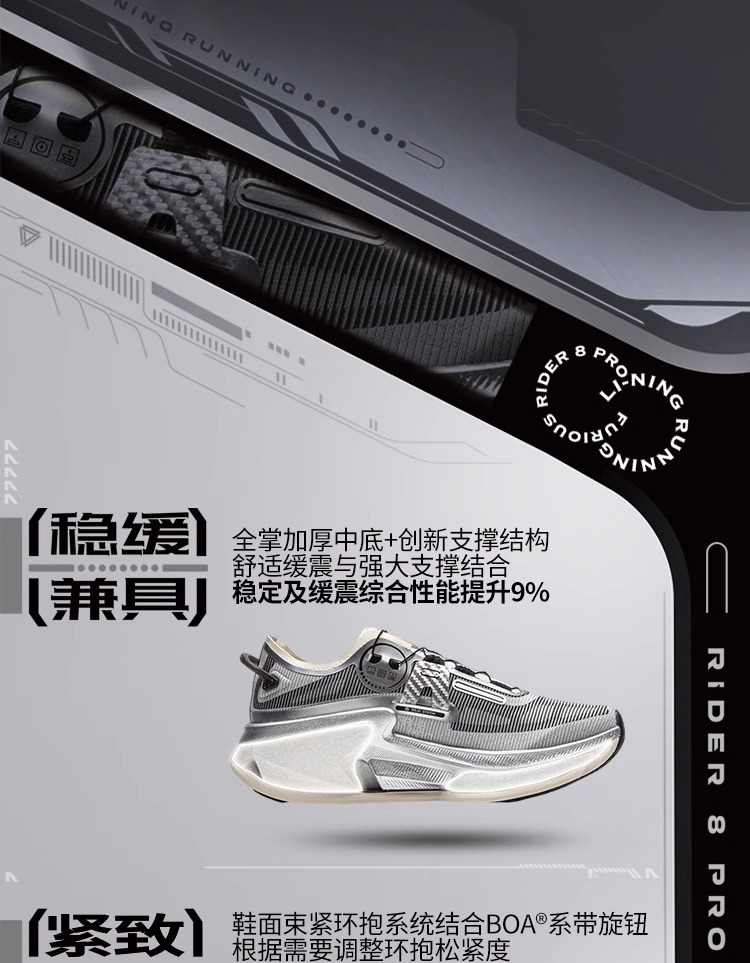 李宁 烈骏8 PRO 女款轻量透气缓震beng丝跑步运动训练鞋