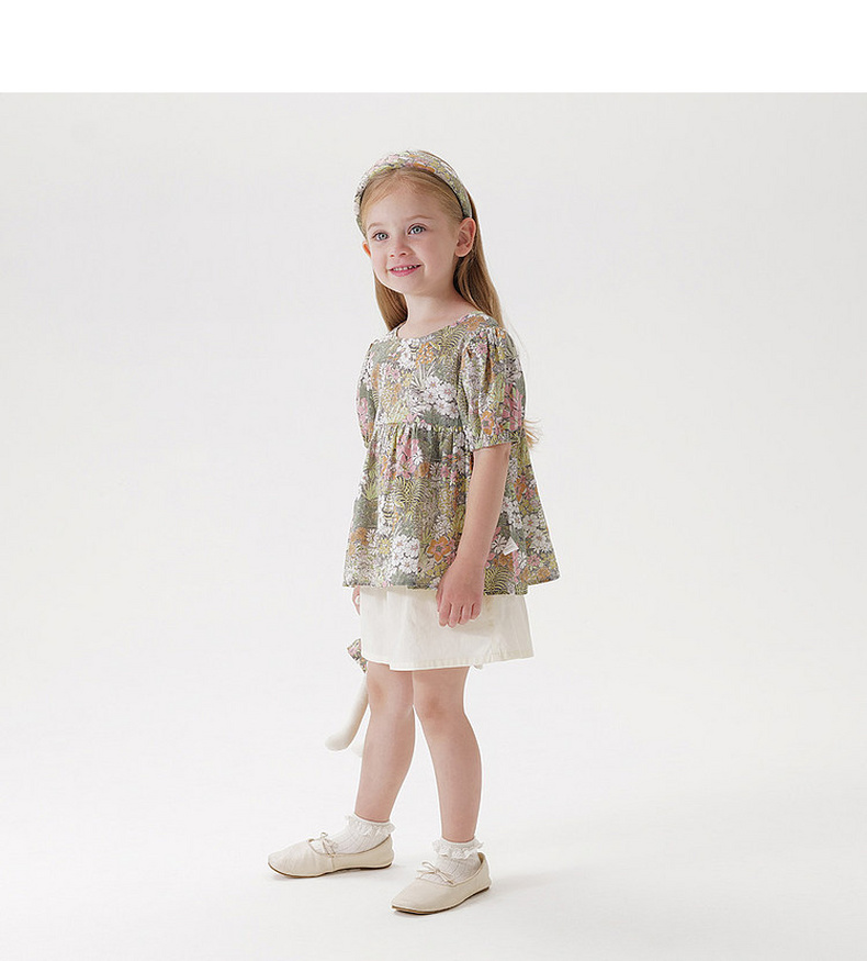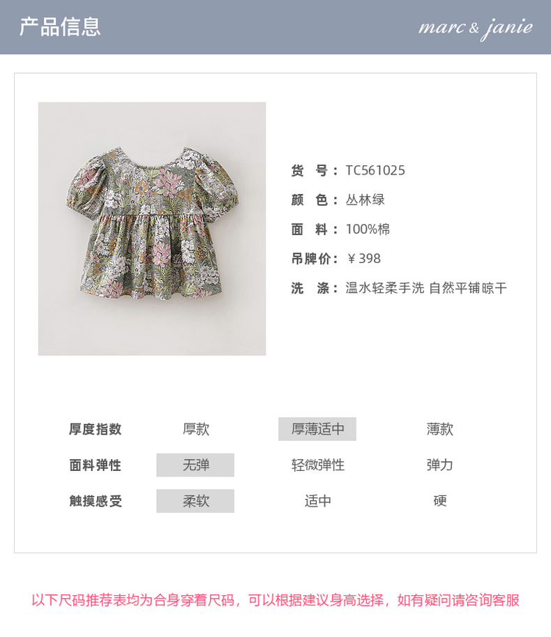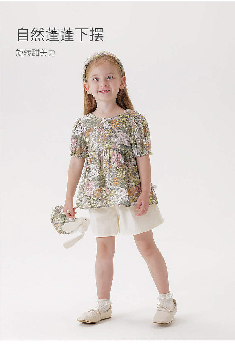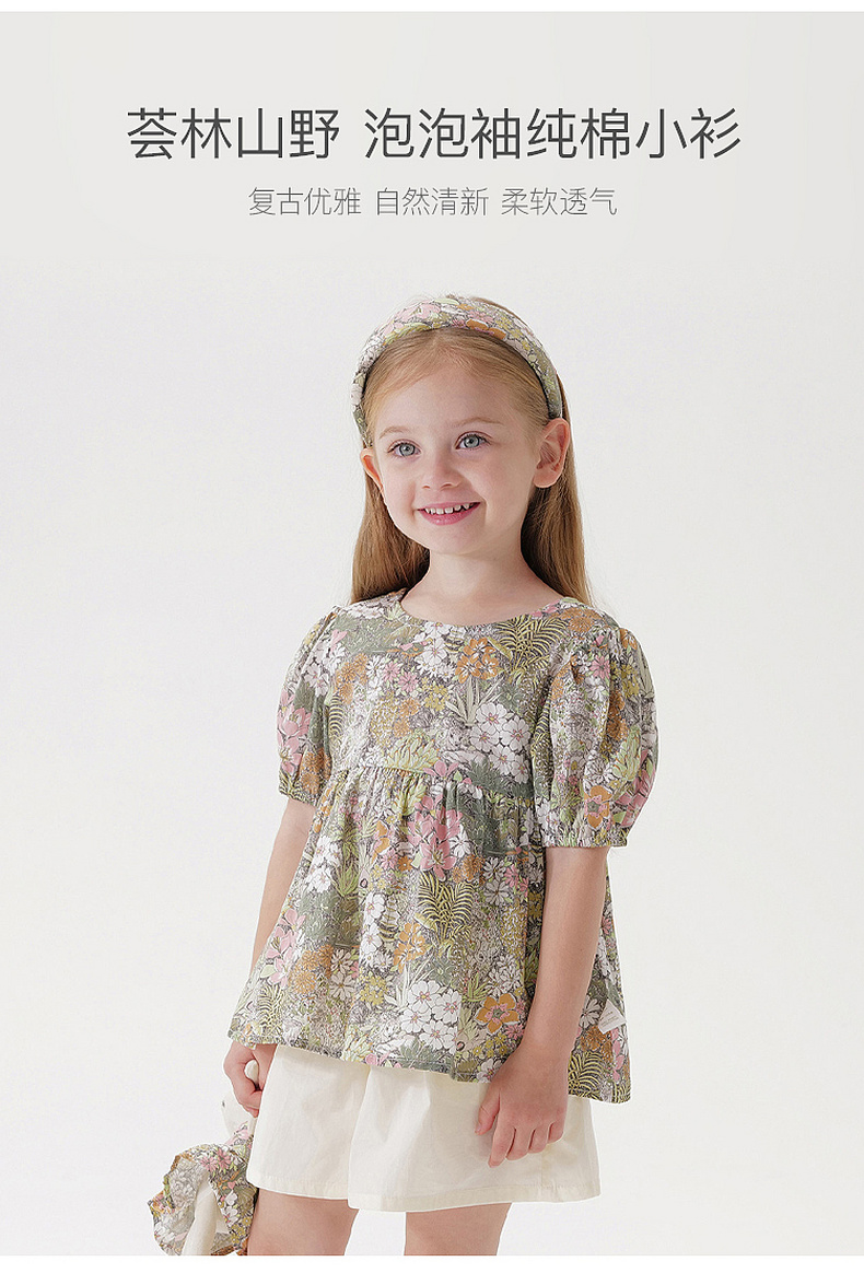 马克珍妮荟林山野女童泡泡袖纯棉小衫2026年夏装新款561025