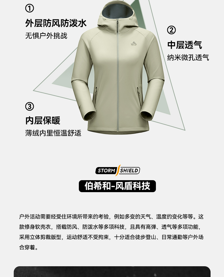 伯希和户外骑行风衣女25新款防风轻量透气收腰外套冲锋衣内胆外套