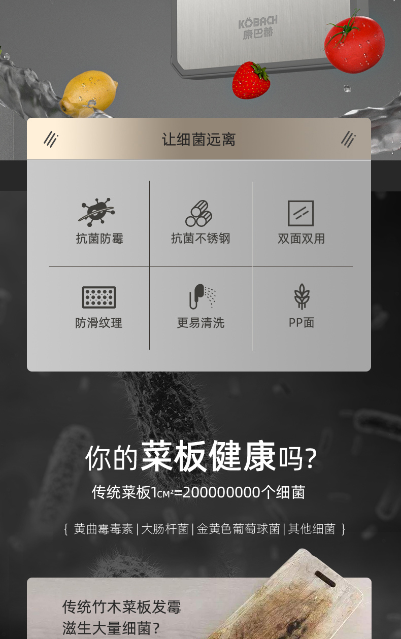 1, 康巴赫砧板是由不锈钢+PP压制而成,没有异味,您可以放心使用。