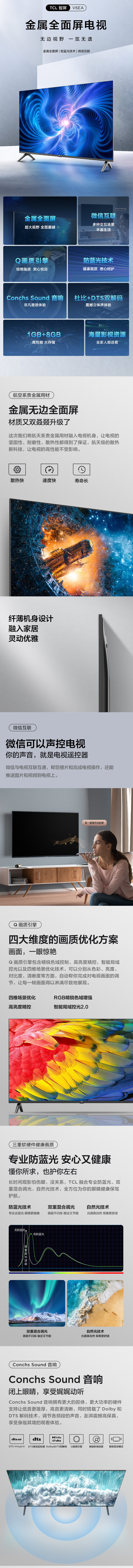 TCL(912577)电视43V6EA 43英寸全高清护眼防蓝光无边全面屏金属边框智能语音 液晶网络智能平板电视机
