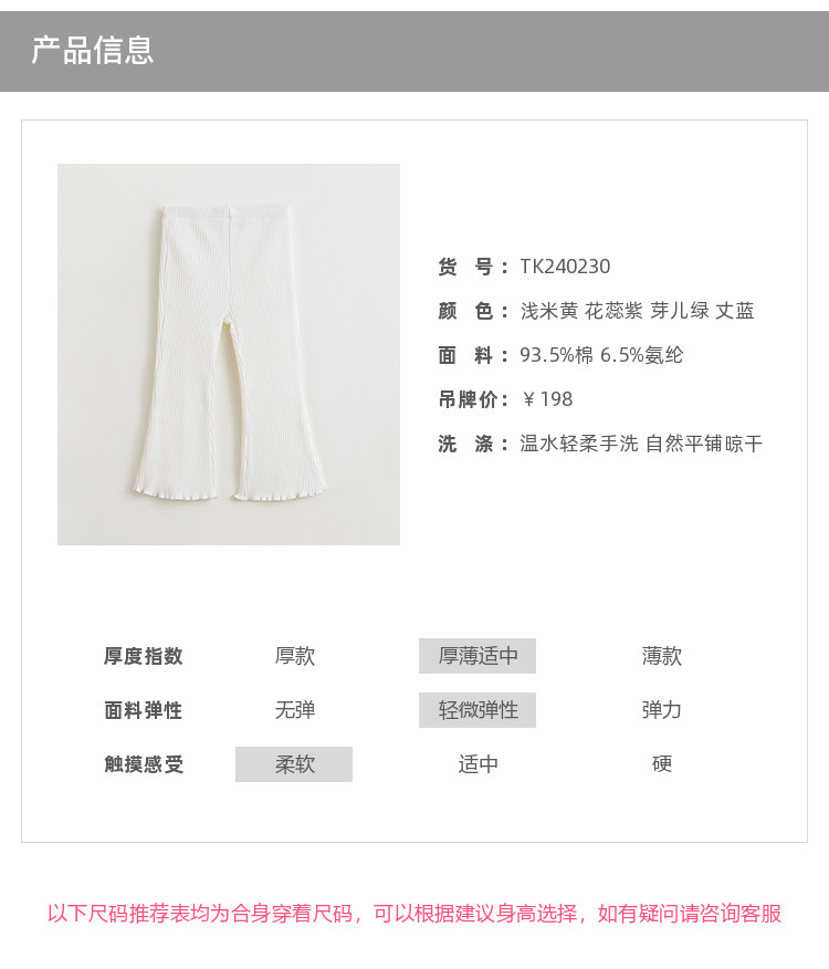 【马克珍妮 芦芙】女童弹力微喇针织打底裤春装新款喇叭裤240230