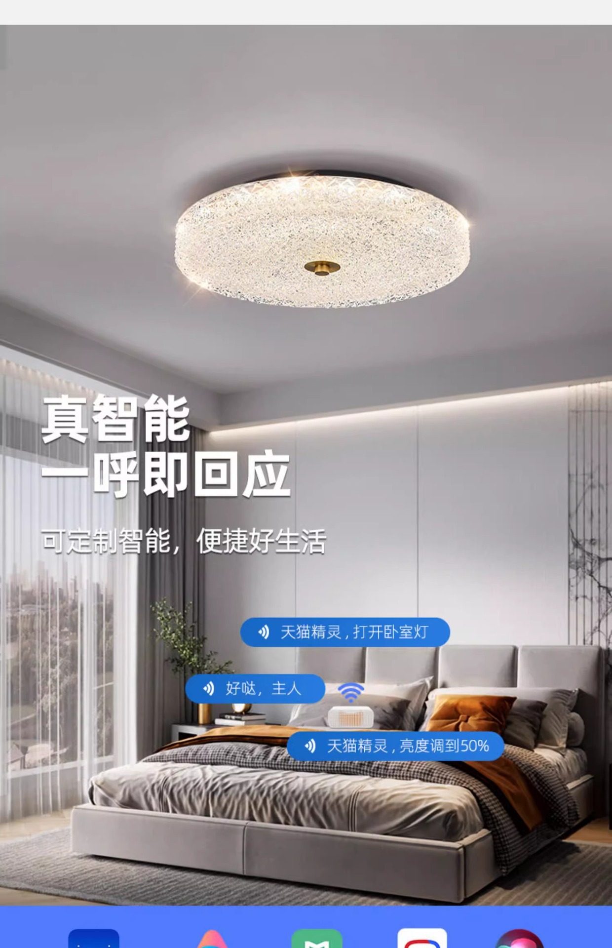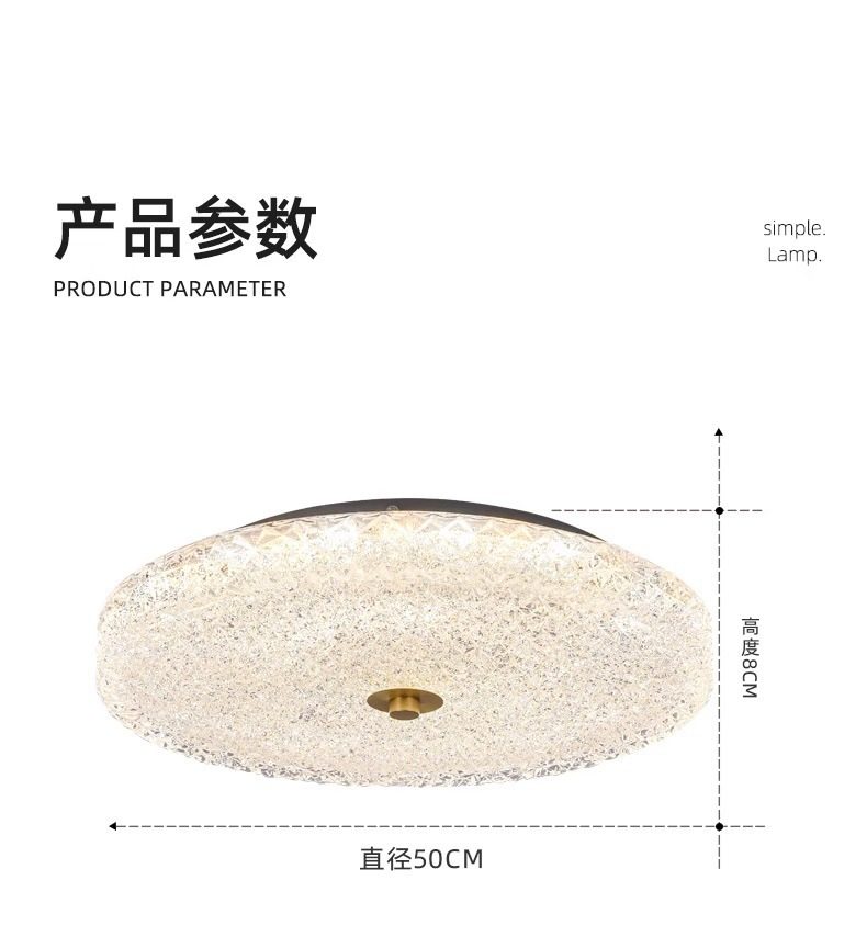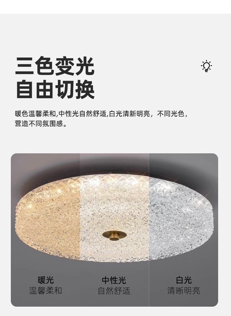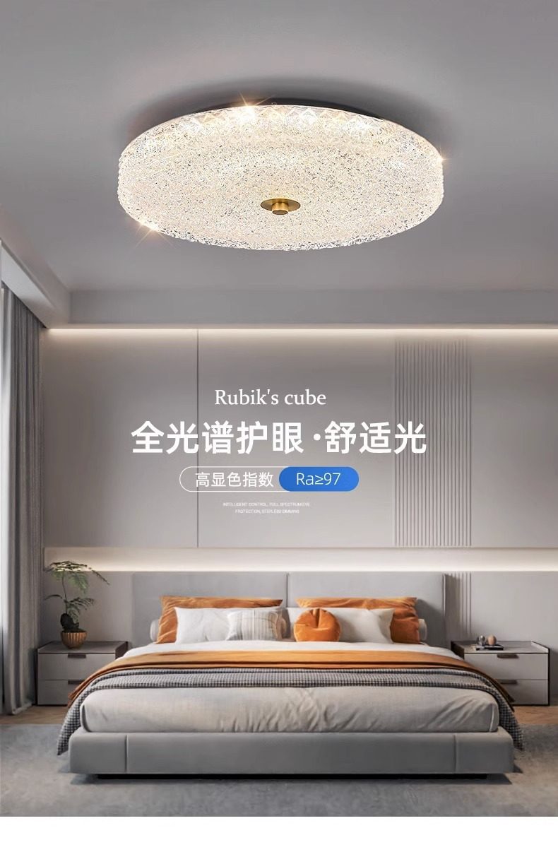 大气圆形法式吸顶灯轻奢创意灯具房间北欧卧室创意全铜水晶玻璃