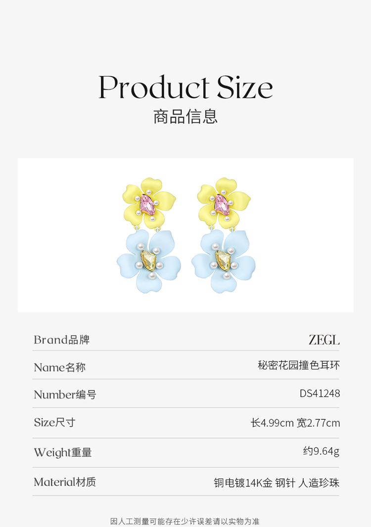 ZEGL设计师秘密花园系列花朵耳环女小众设计感高级耳钉夏天耳饰品