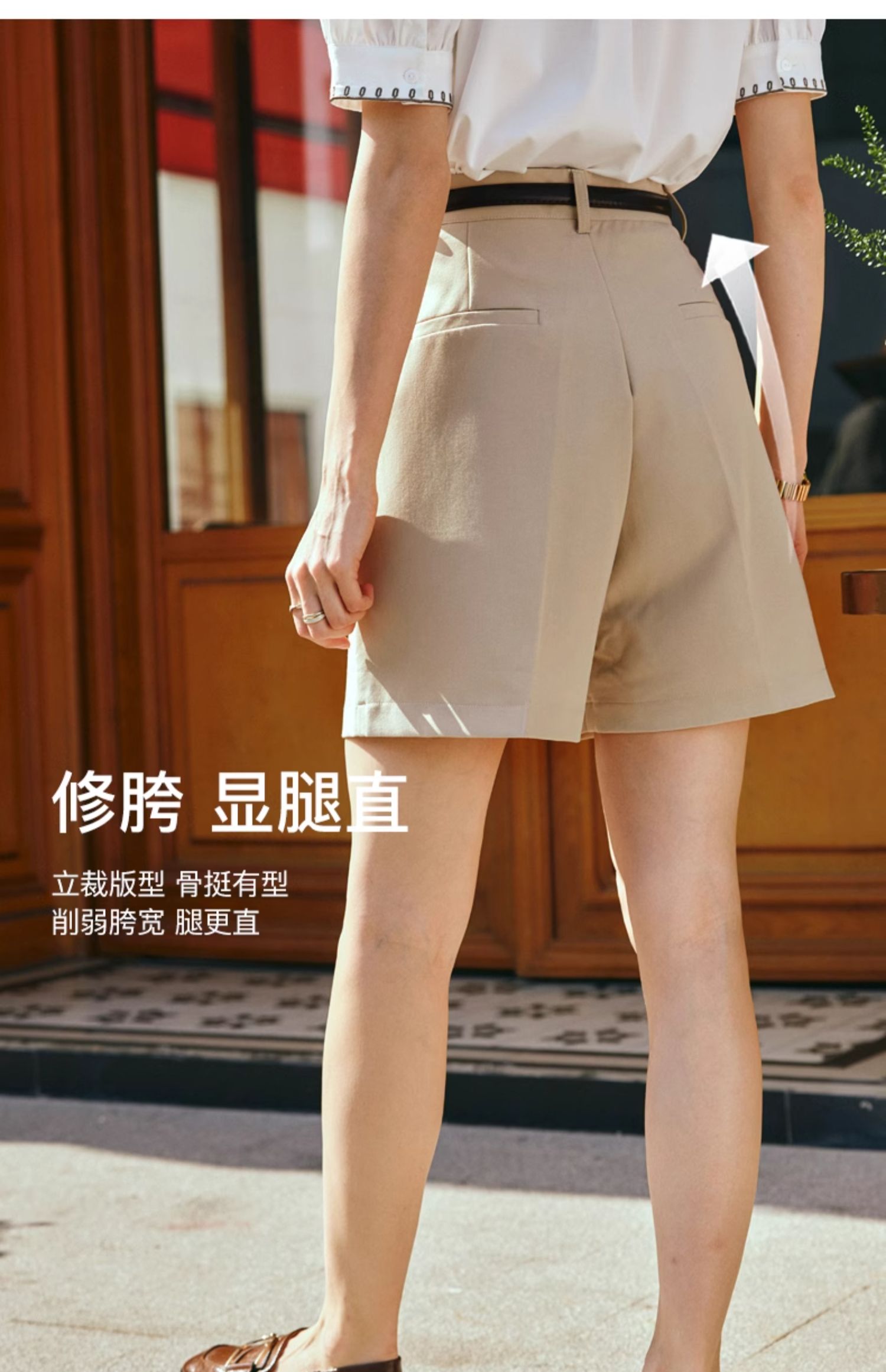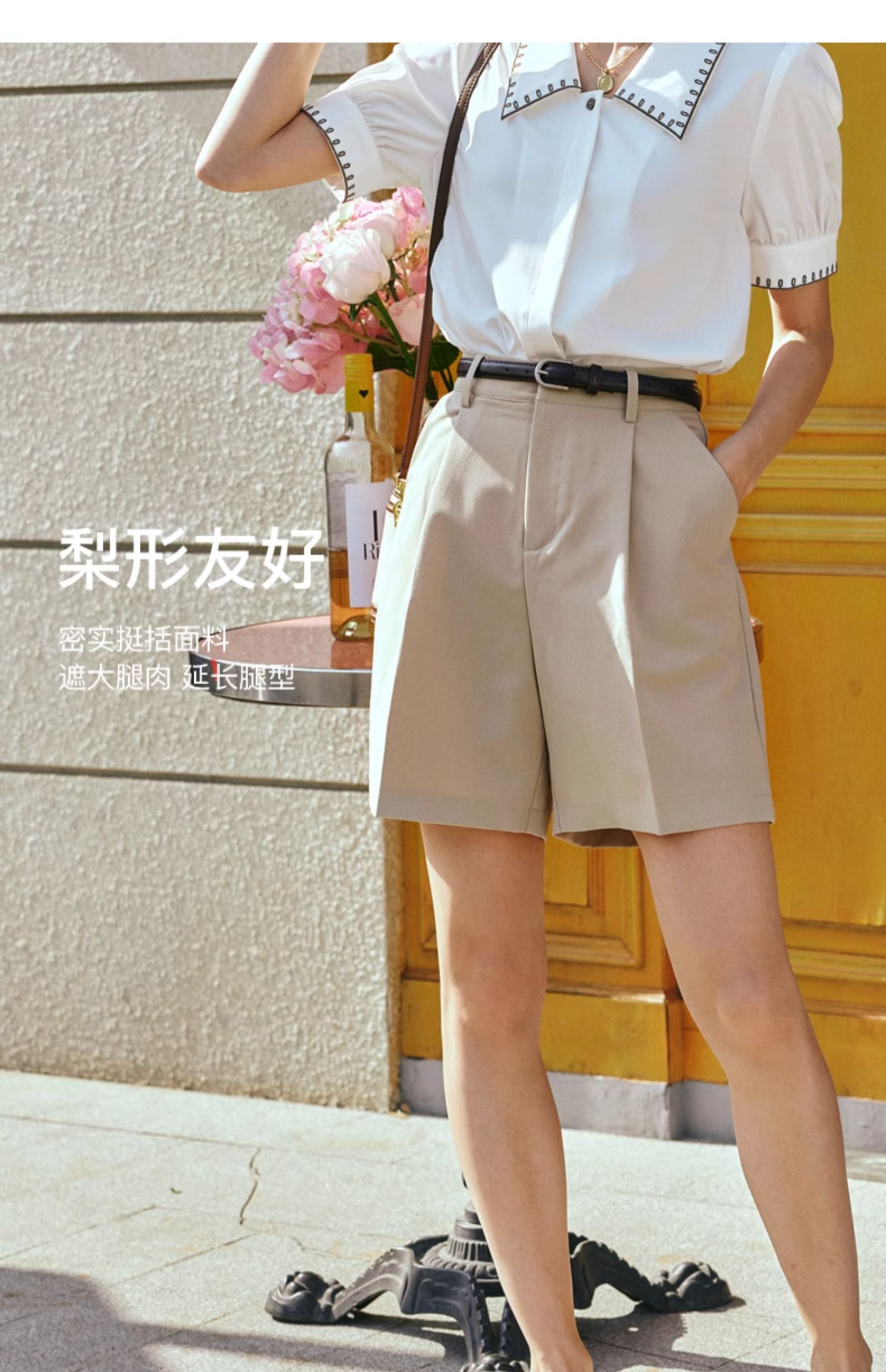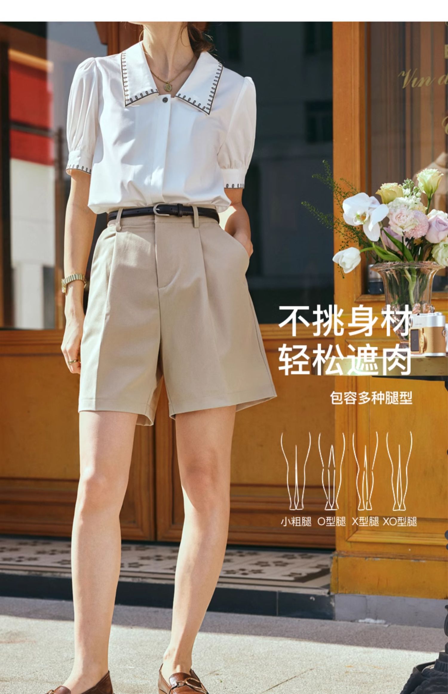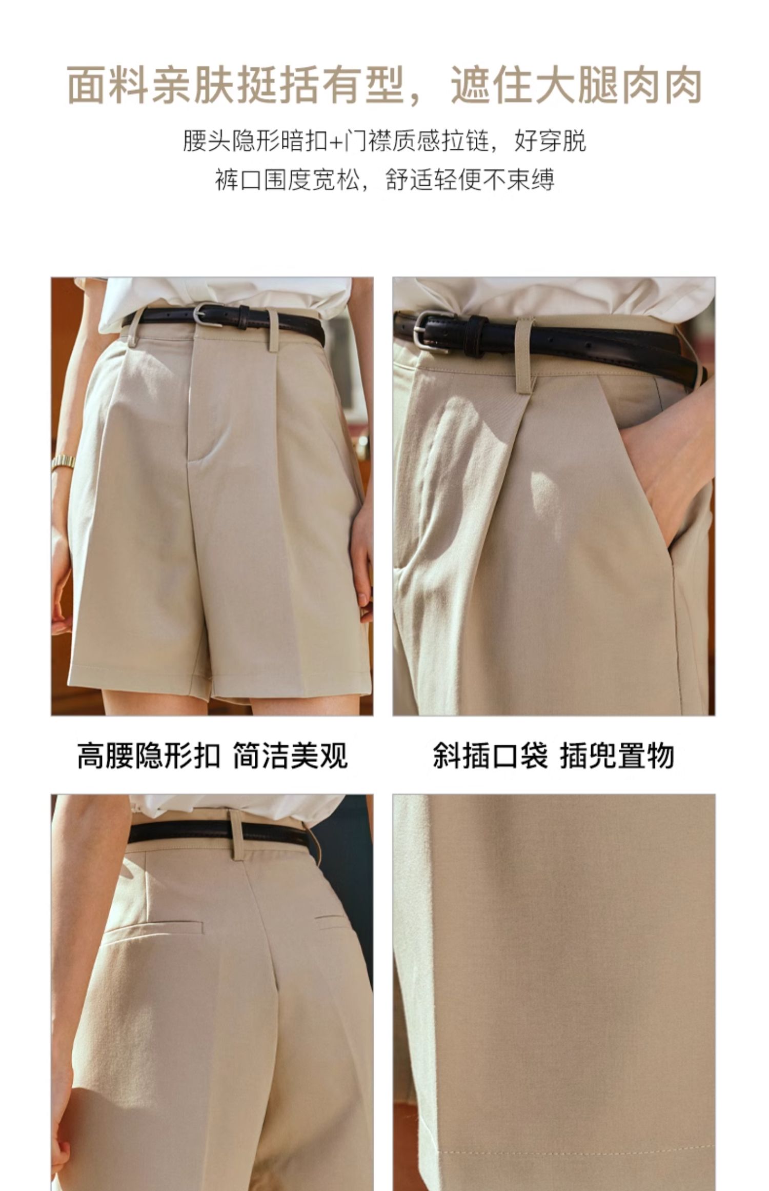 OLrain欧芮儿浅卡其色休闲裤女早春2024新款通勤简约百搭西装短裤