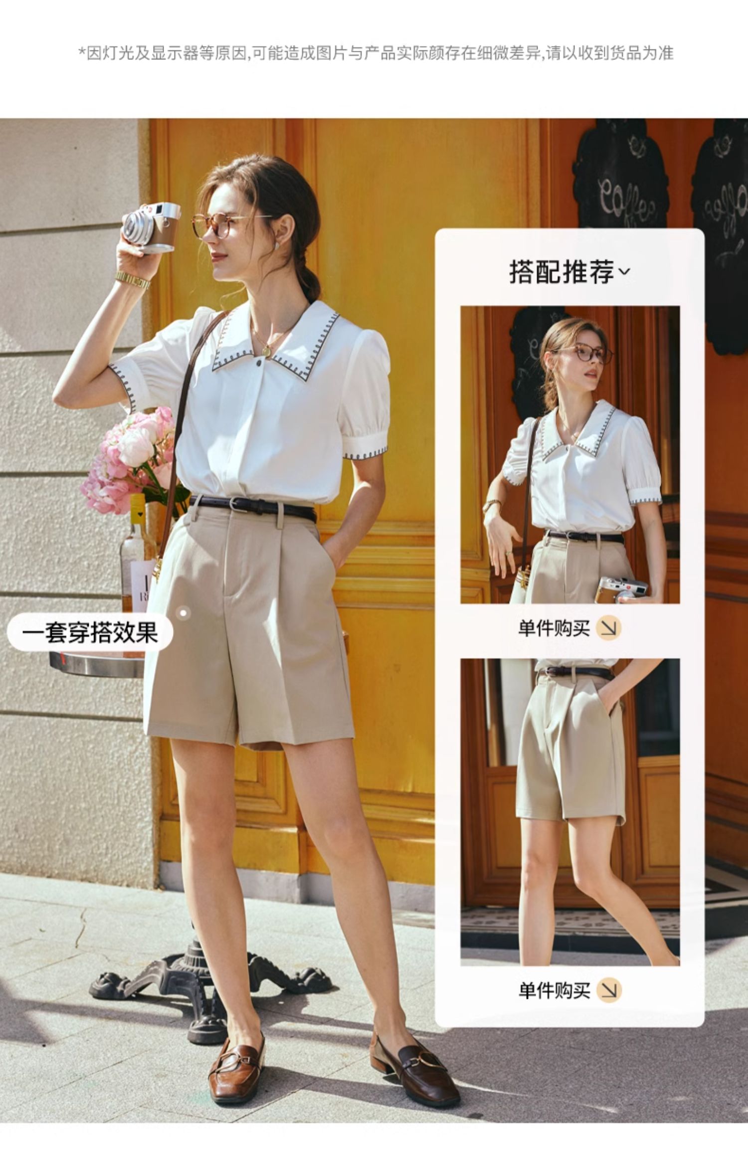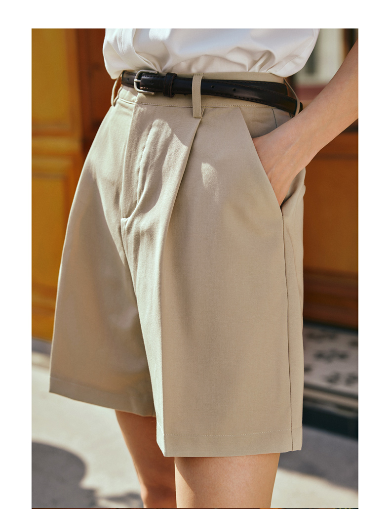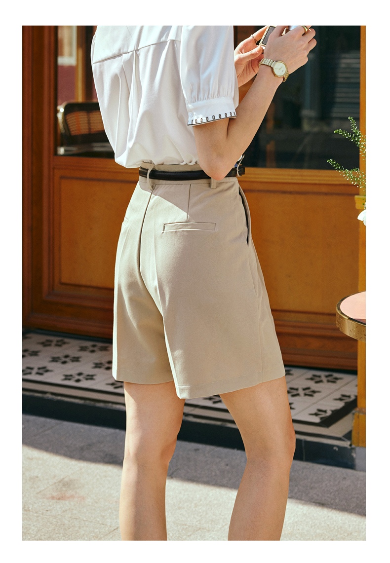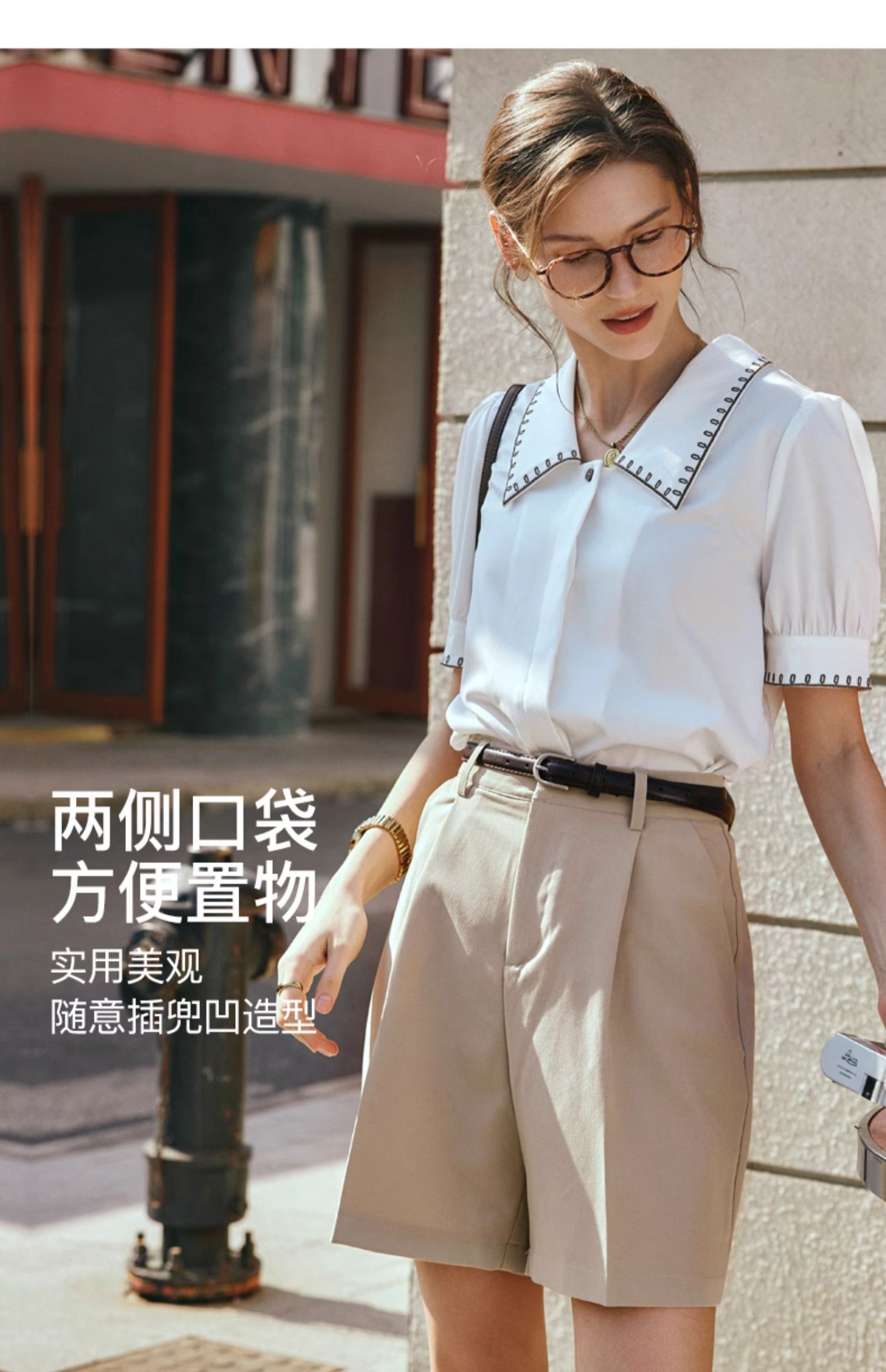 OLrain欧芮儿浅卡其色休闲裤女早春2024新款通勤简约百搭西装短裤
