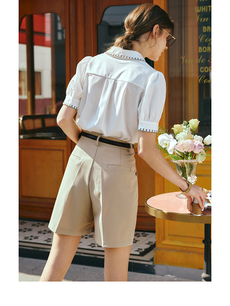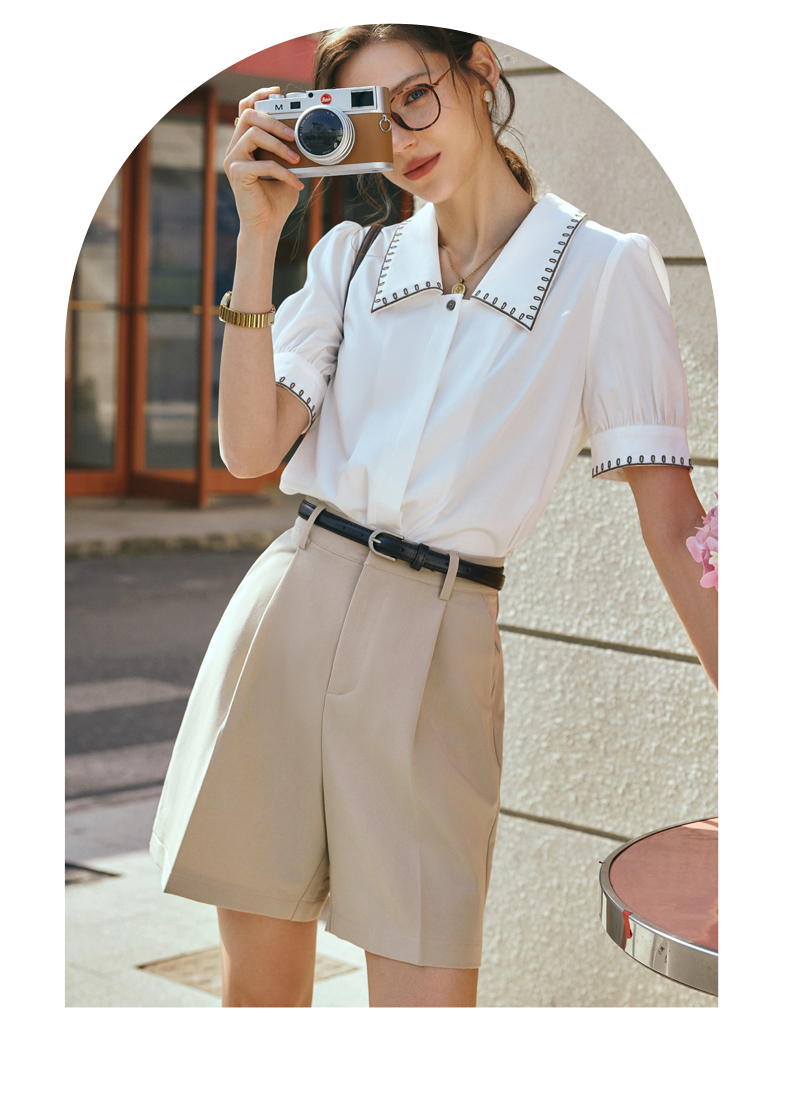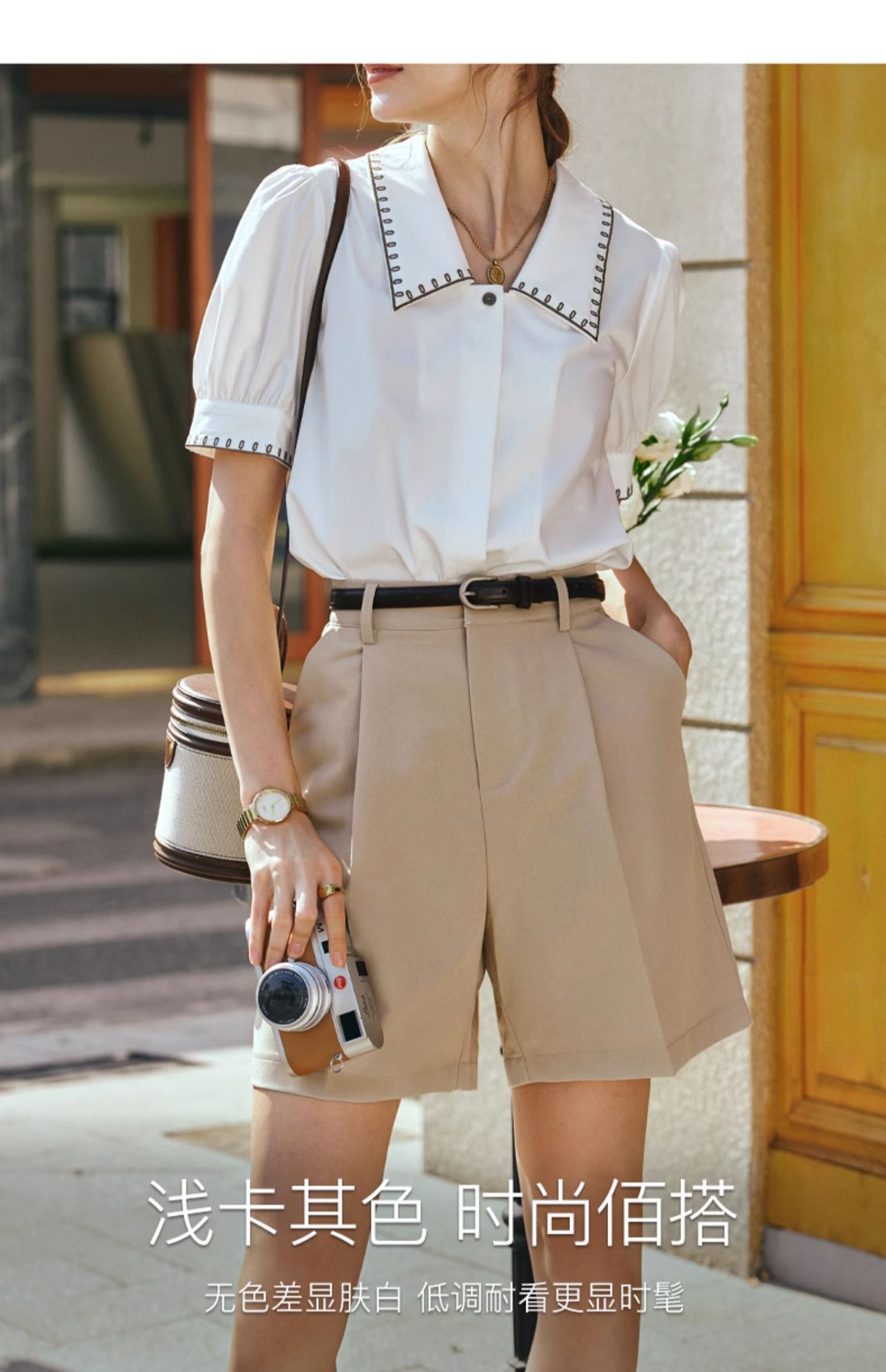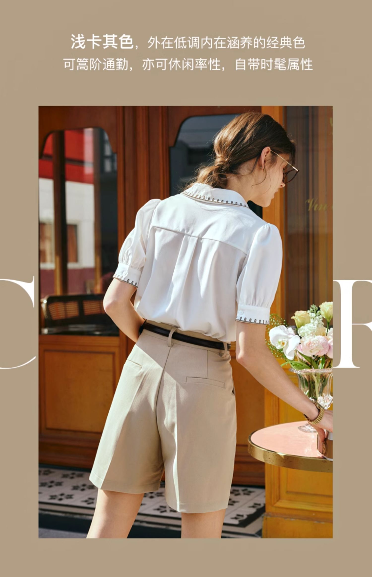 OLrain欧芮儿浅卡其色休闲裤女早春2024新款通勤简约百搭西装短裤