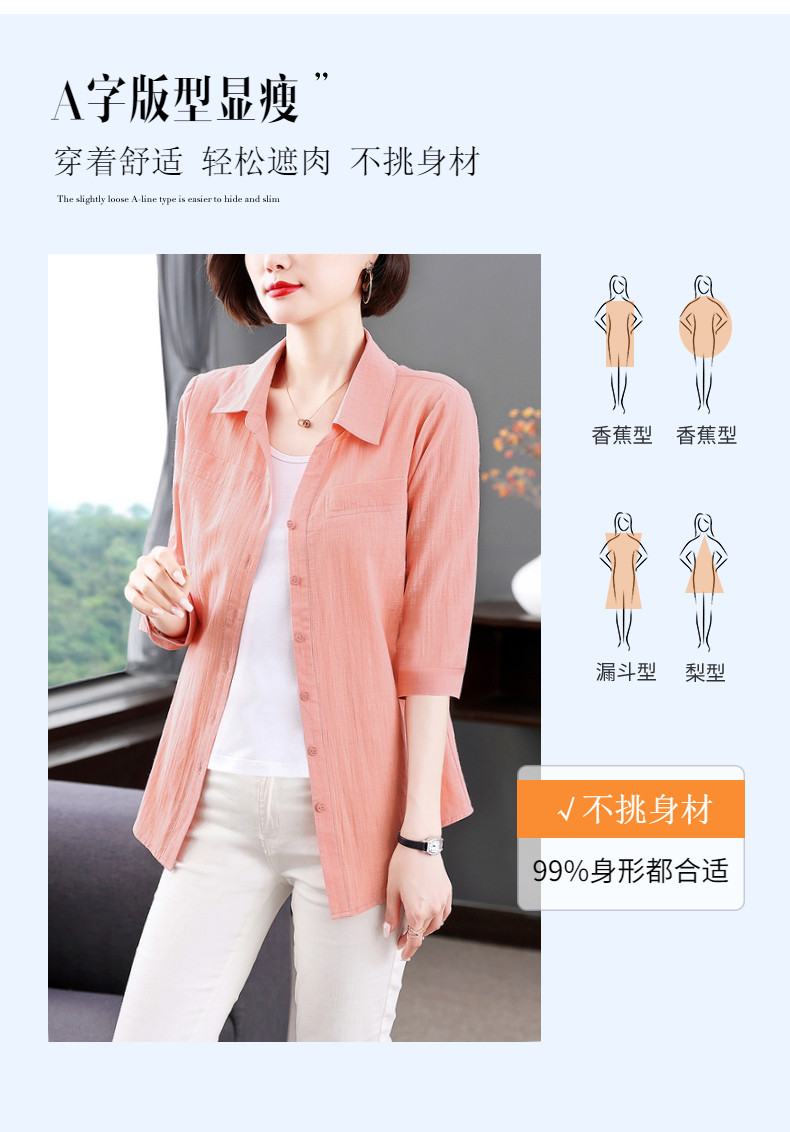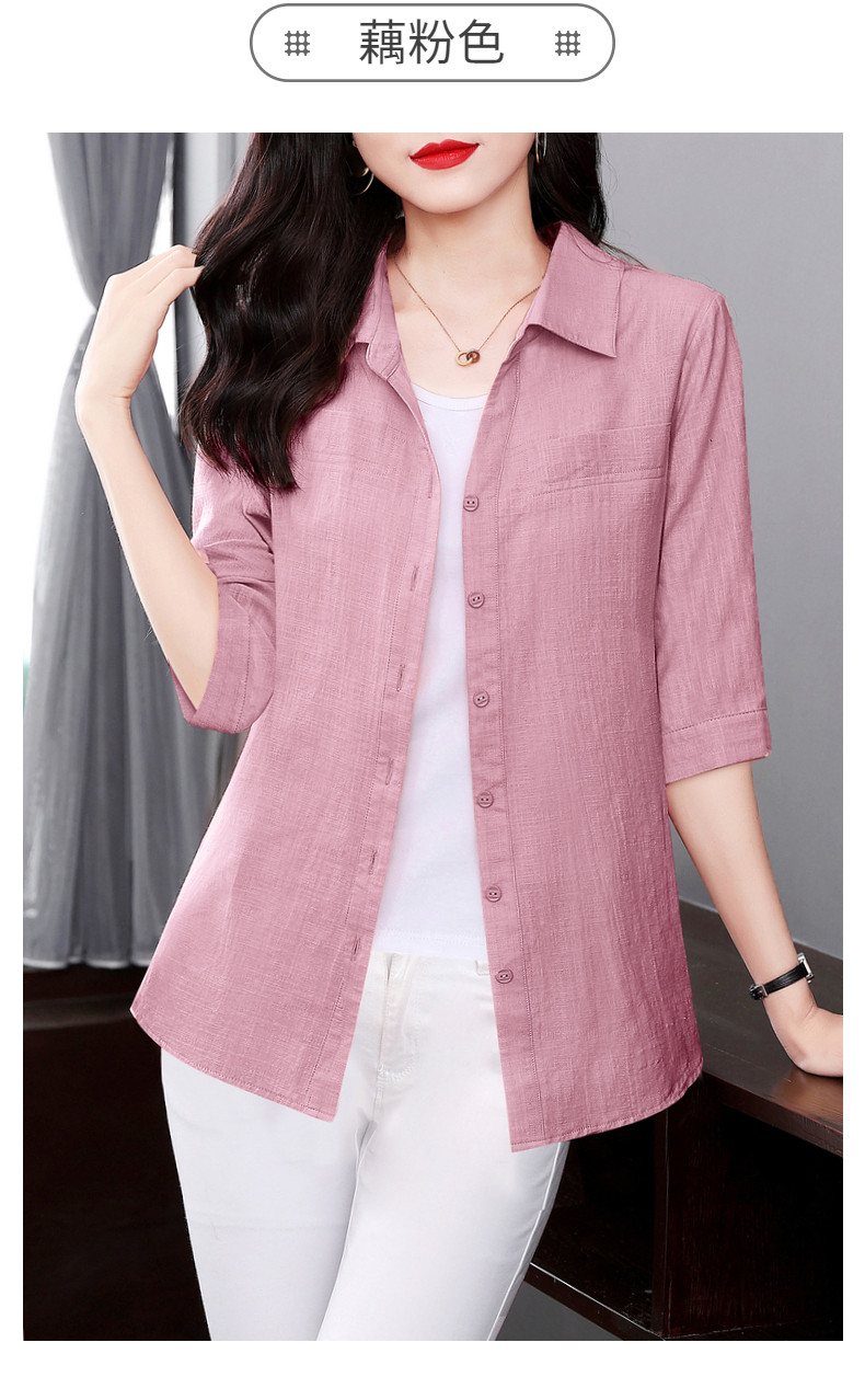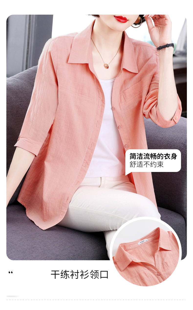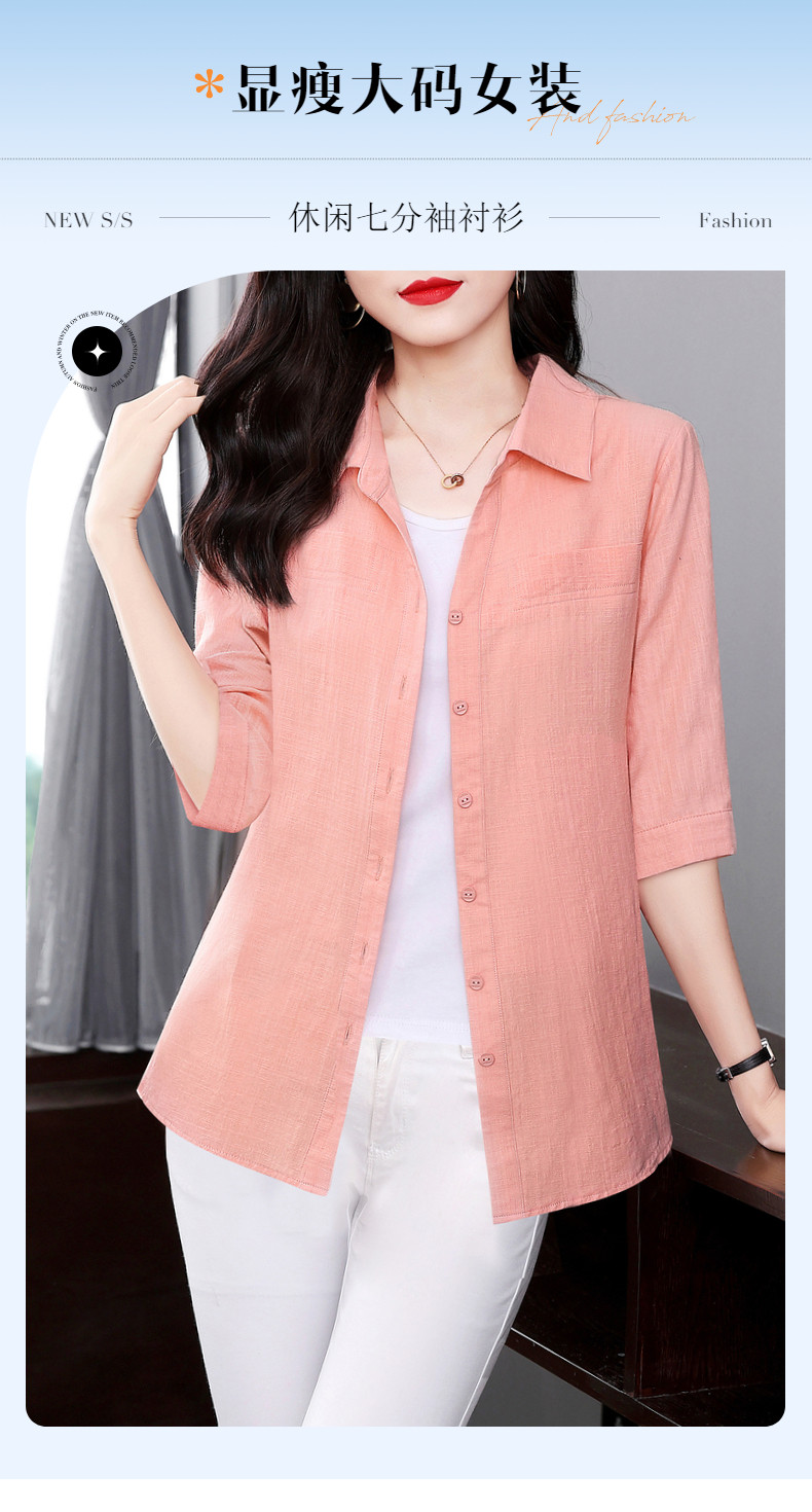 短袖衬衫女上衣纯棉2025夏季女式新款薄款衬衣七分袖休闲女士外套