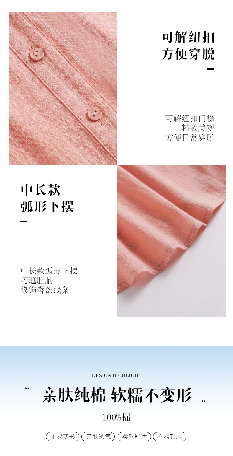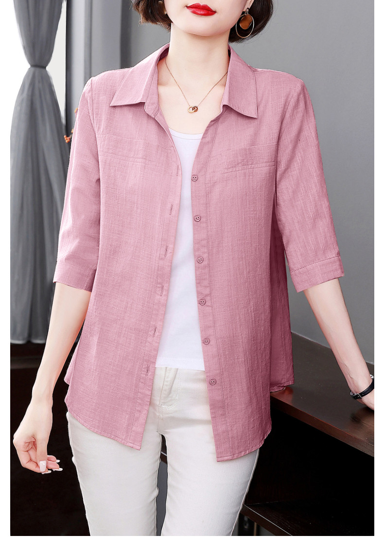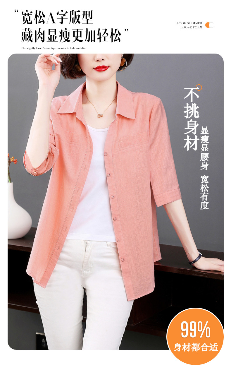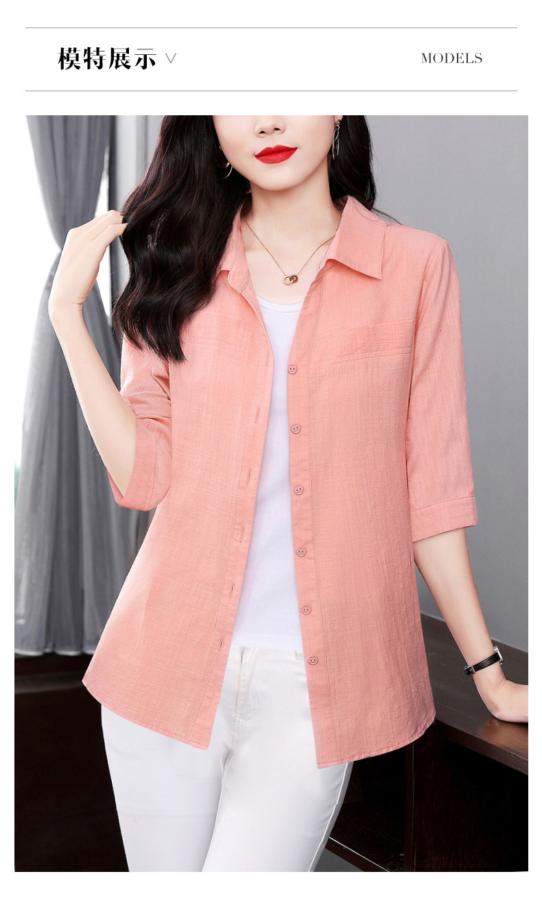 短袖衬衫女上衣纯棉2025夏季女式新款薄款衬衣七分袖休闲女士外套