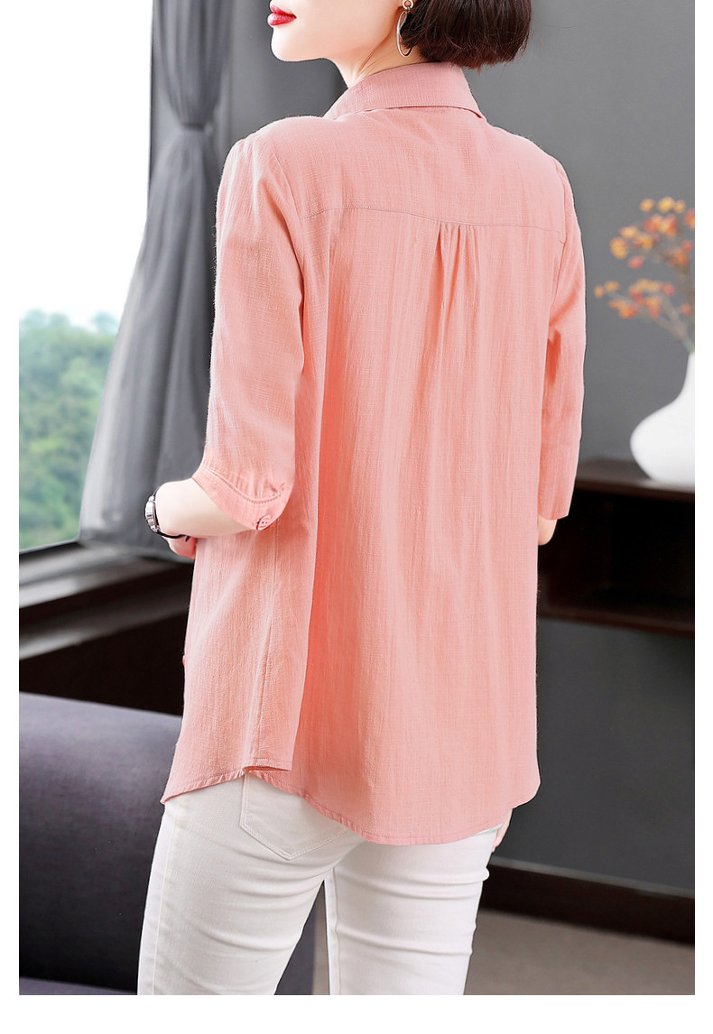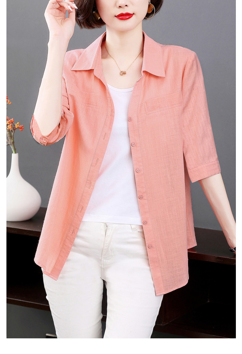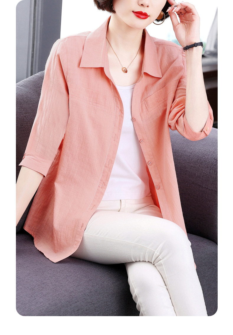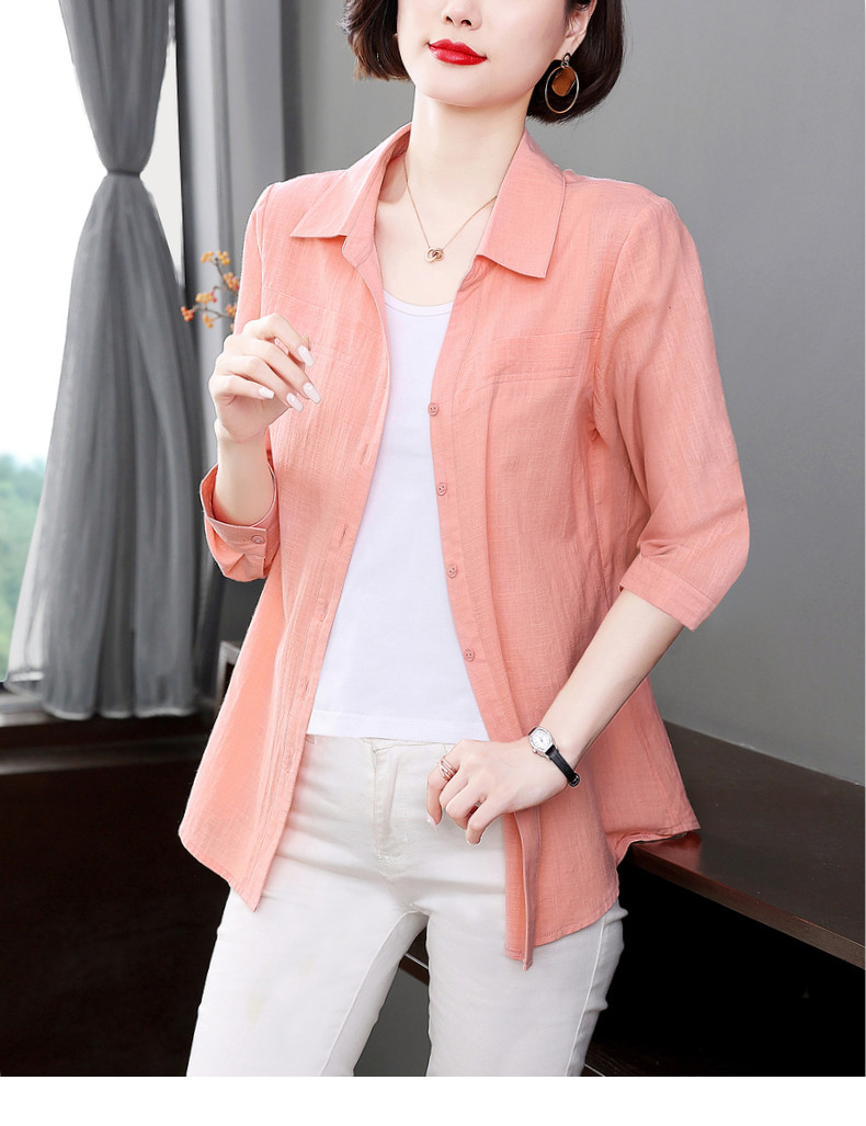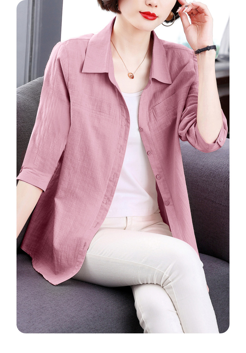 短袖衬衫女上衣纯棉2025夏季女式新款薄款衬衣七分袖休闲女士外套